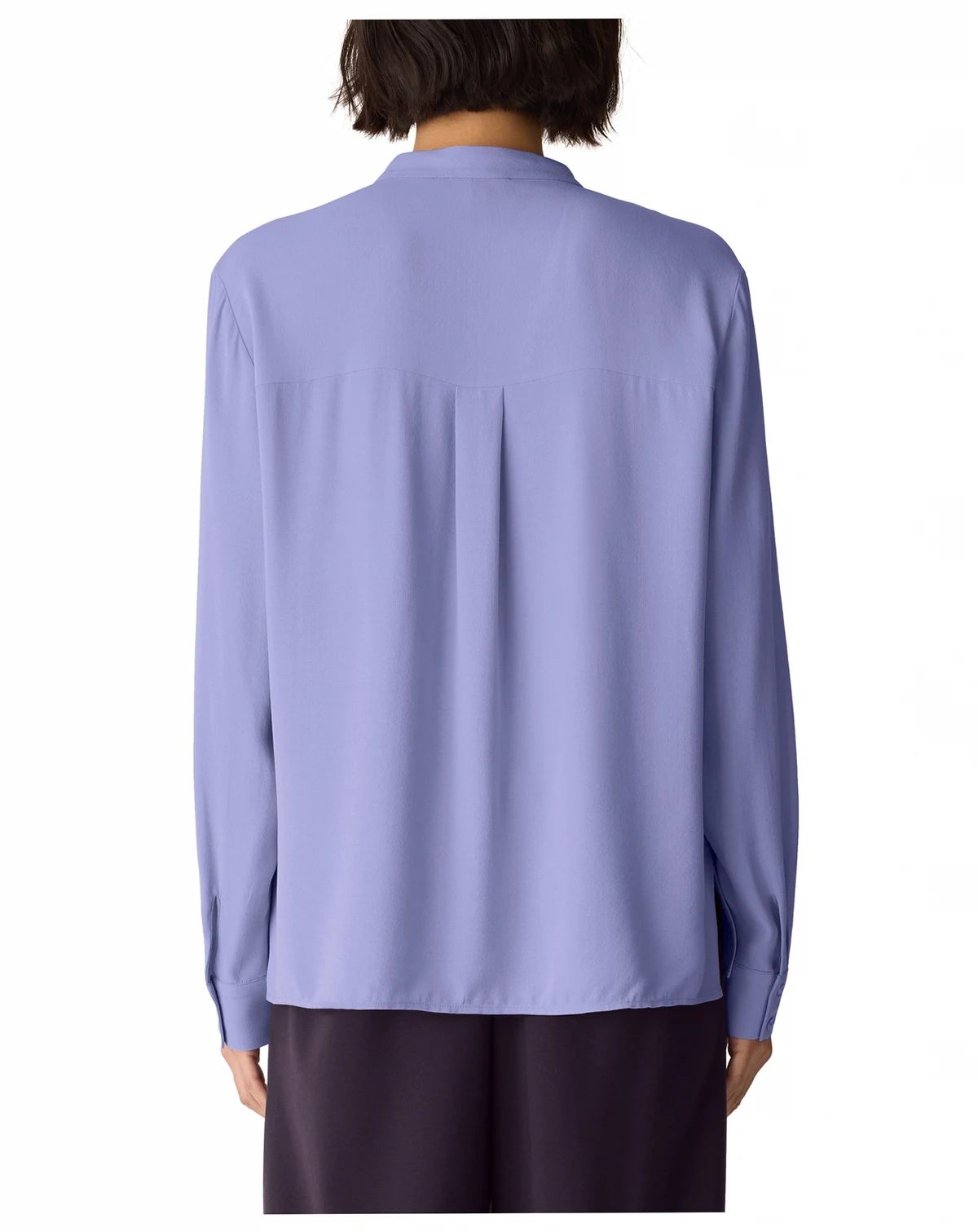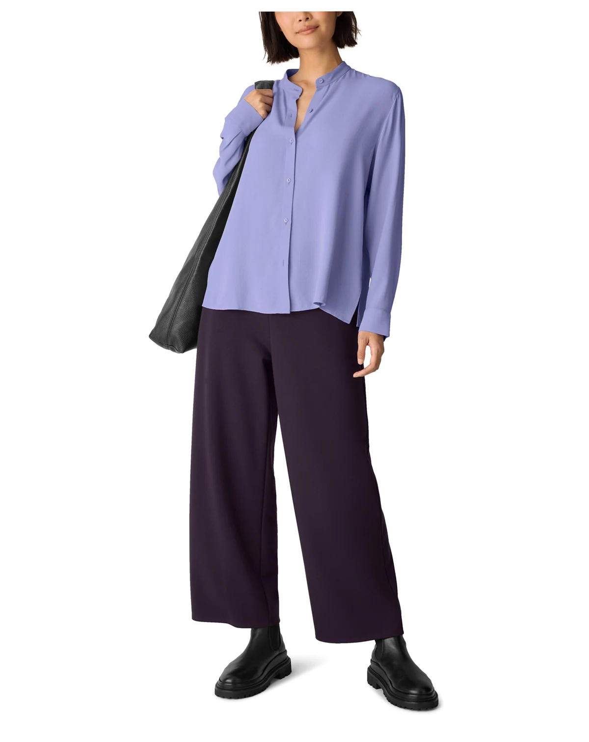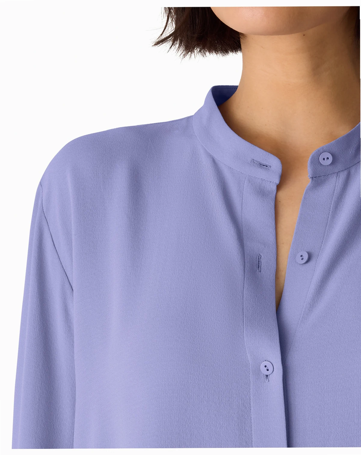 Appreciate the light, fluid and versatile nature of a subtly textured matte silk on this Eileen Fisher mandarin collar top. The button front and long sleeves offer a timeless and elegant look.