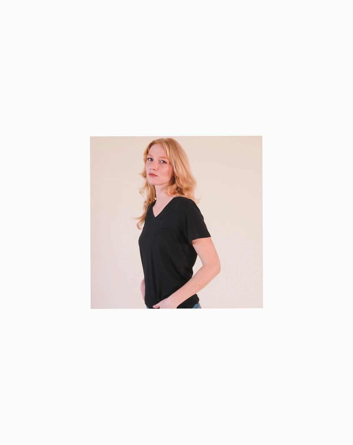 Crafted from an earth-friendly blend of Tencel and Cotton Jersey, the Louise V-neck Tee is impossibly smooth, lightweight, and kind to your skin.