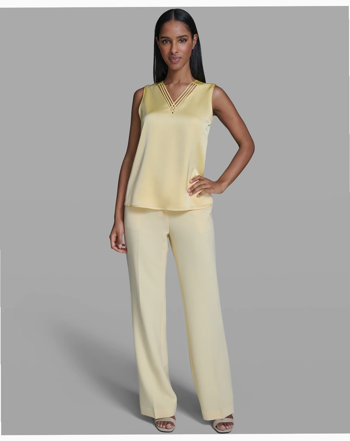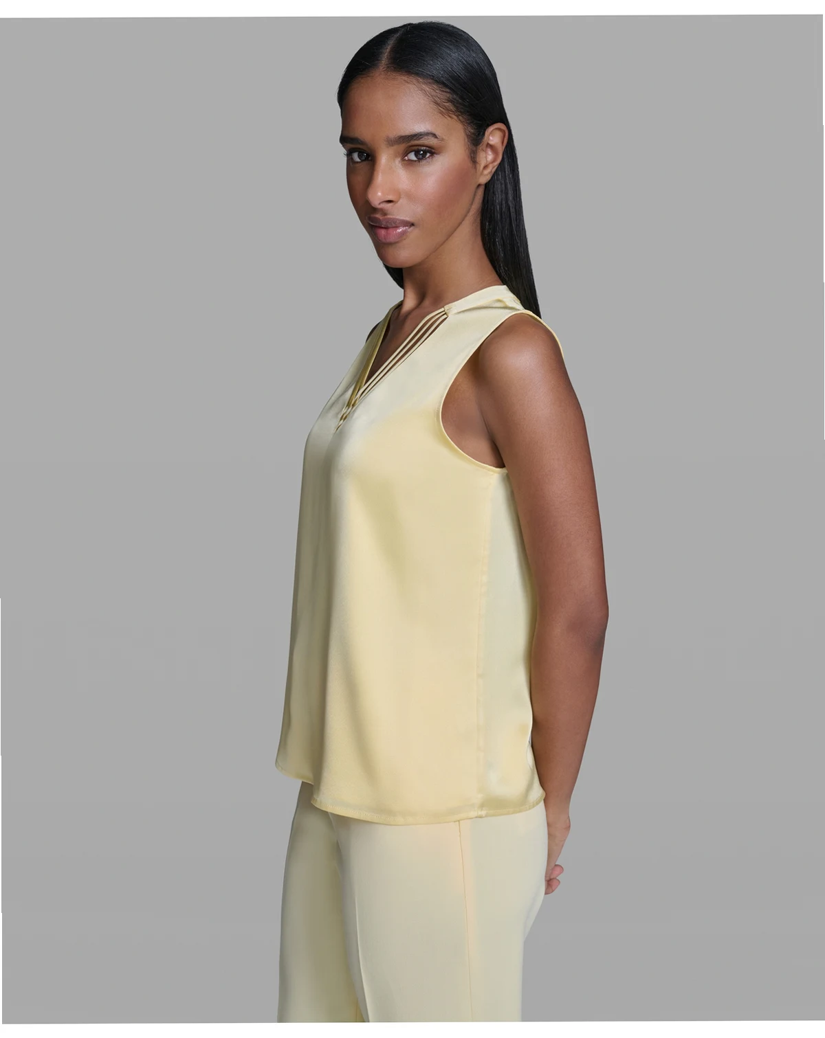 Elevate your layering game with this KARL LAGERFELD PARIS camisole, designed in a sleek camisole silhouette with a V-neckline and sleeveless style. Its pull-on construction brings effortless, modern appeal.