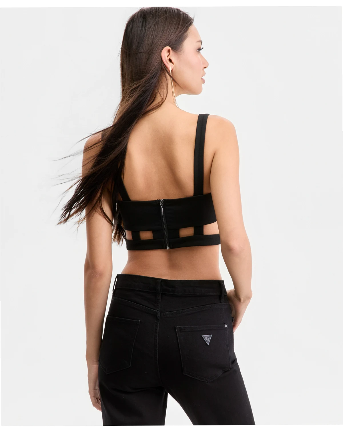 Sculpt your silhouette with GUESS' Koryn top with its contoured shaping and ultra-cool caged details.