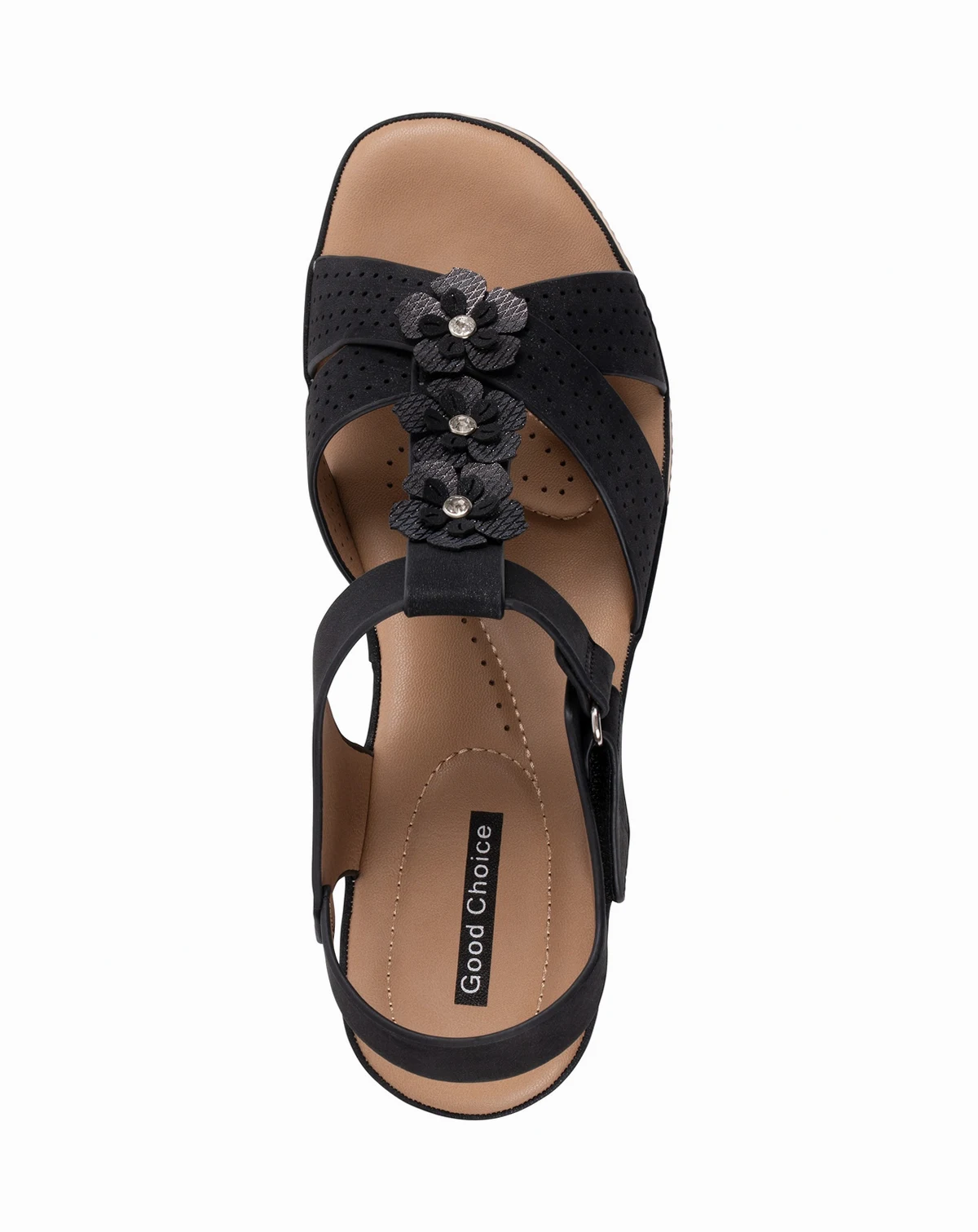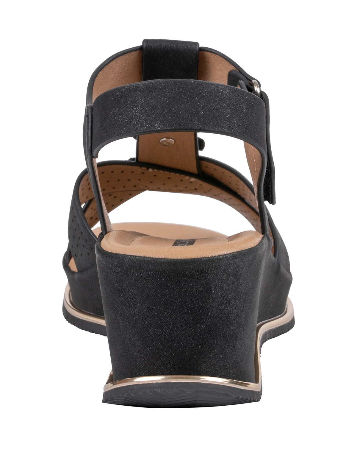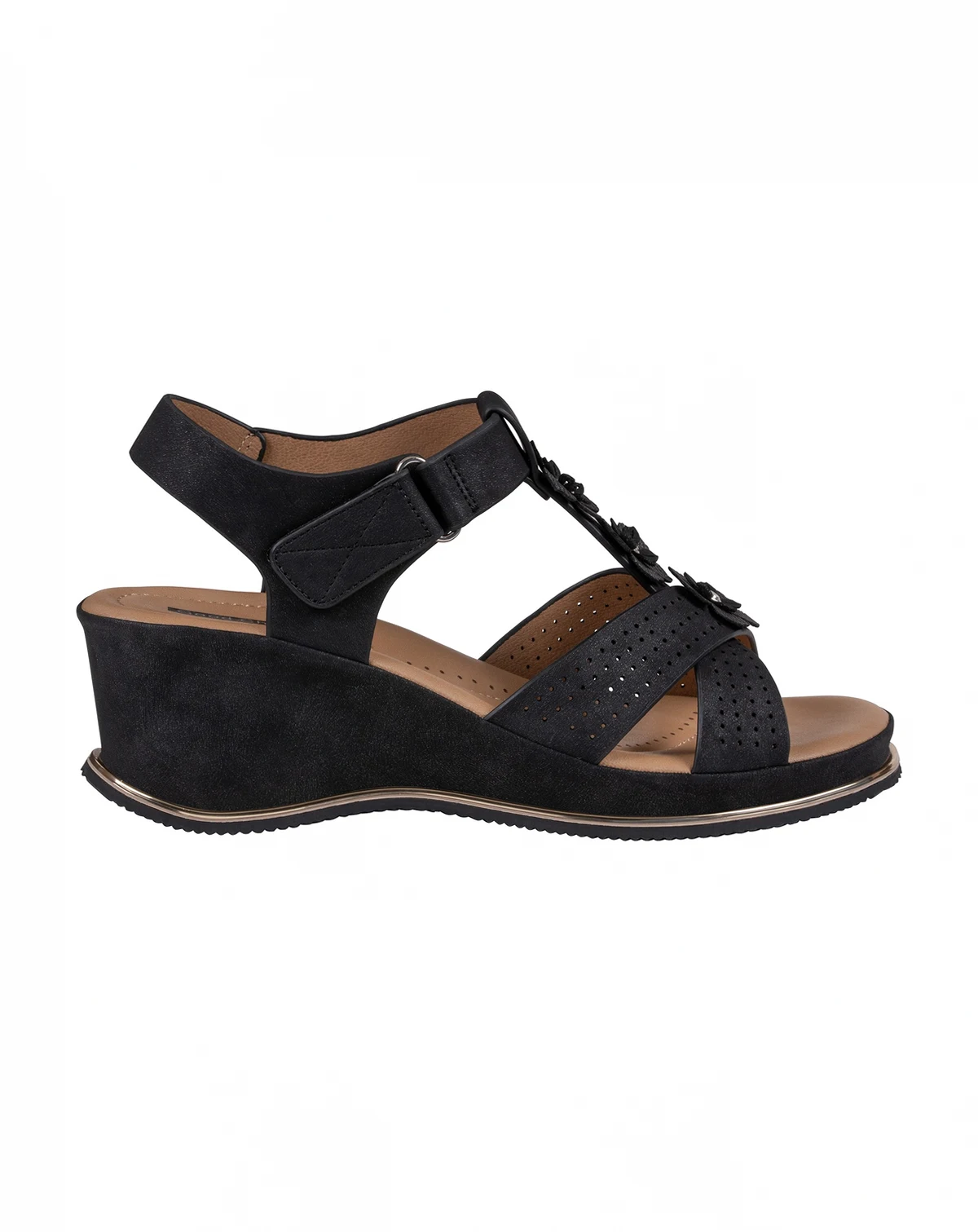 The Miko sandal by GC Shoes offers a perfect blend of comfort and feminine style. Featuring perforated cross straps and delicate floral accents, it brings a touch of charm to any look. The adjustable ankle strap ensures a secure fit, while the cushioned insole and low wedge heel provide all-day comfort and support.