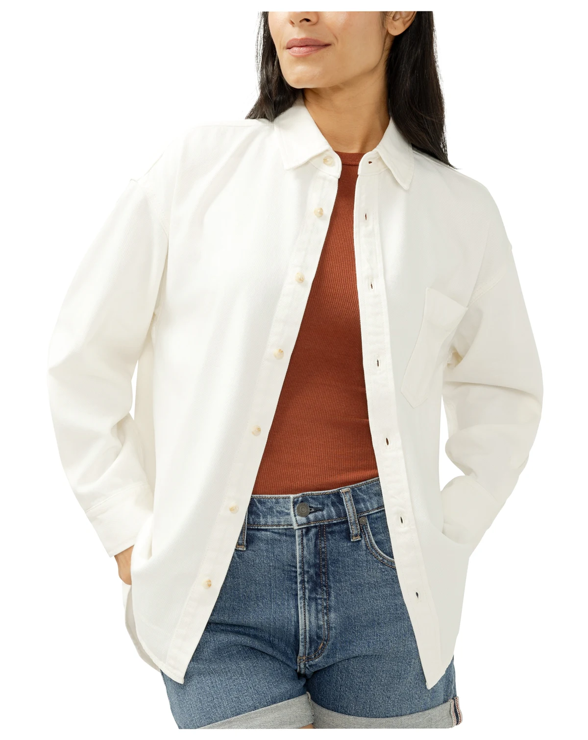 An easygoing denim shirt made from super soft, no-stretch denim that holds its shape while staying comfortable. Designed with a relaxed fit, button front, and chest pocket for a laid-back, everyday look.
