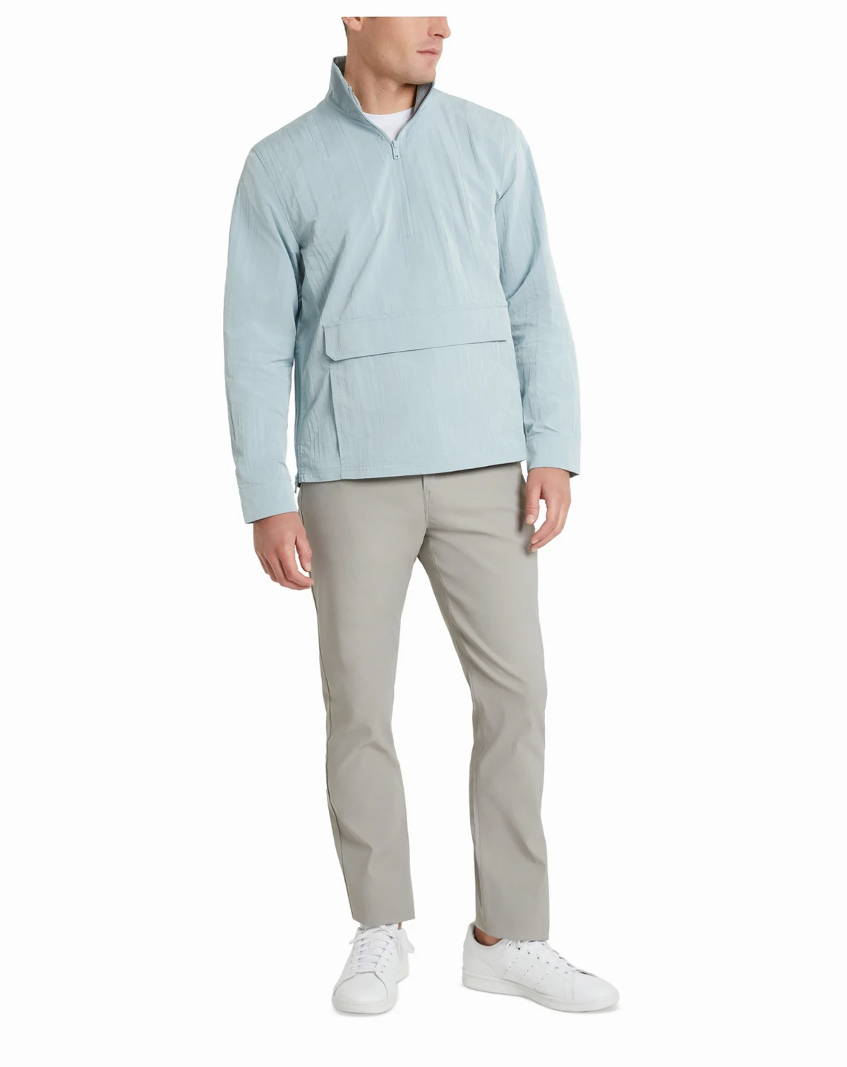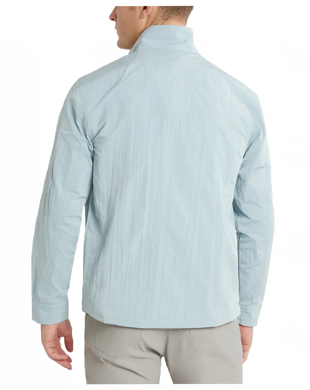 Stride your way through windy, wet-weather days in this moisture-wicking windbreaker from Kenneth Cole, complete with a crisp stand collar and a roomy pocket at the front.