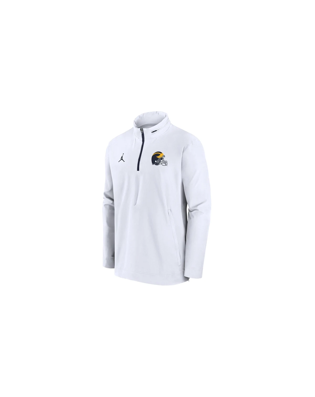 Channel your inner coach with this Michigan Wolverines Sideline Coaches Quarter-Zip Jacket from Jordan. This lightweight Michigan Wolverines quarter-zip is designed with mesh lining and a zippered mock-neck collar with a hidden hood. You'll appreciate the embroidered fabric applique and two front zippered pockets. This jacket is the perfect way to stay warm and show your Michigan Wolverines pride on those chilly fall days in Ann Arbor.