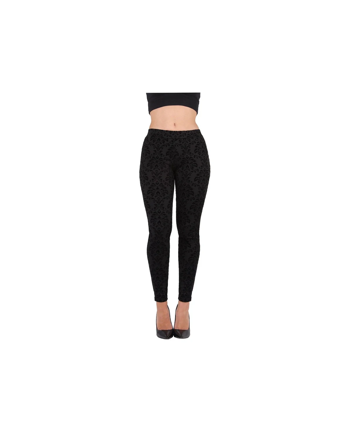 Dramatic elegance and bold style come together in our Velvet Glory Leggings. A classic black is enhanced with a subtle, dark damask enveloping each leg, giving you a velvety soft step and providing day-through-night-comfort to keep you going.