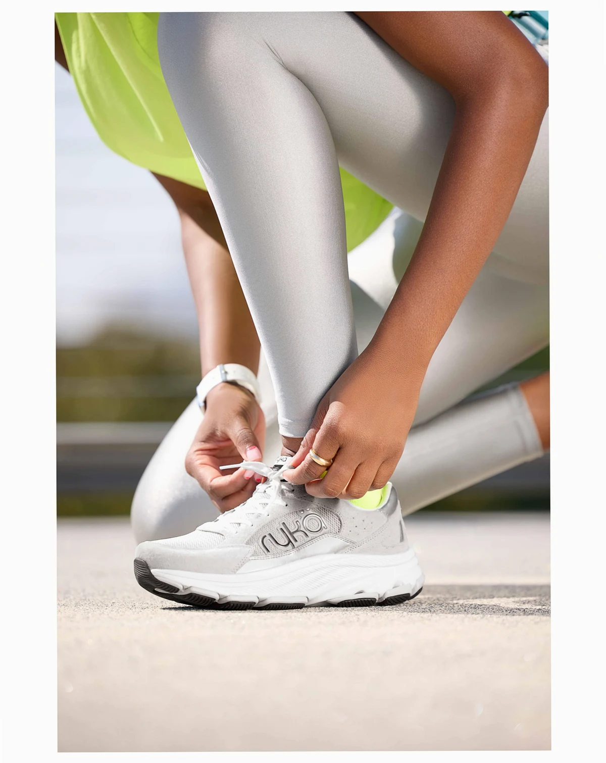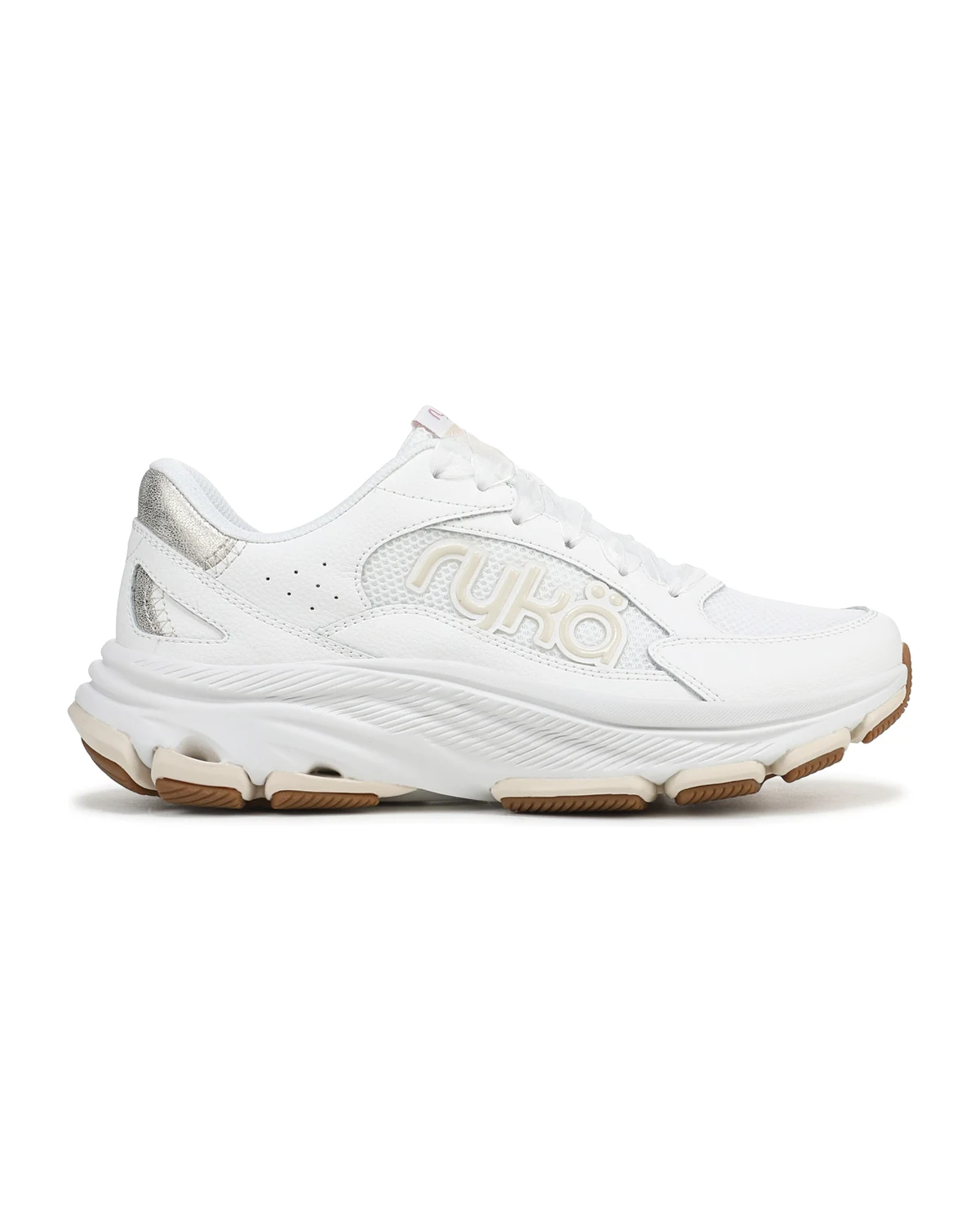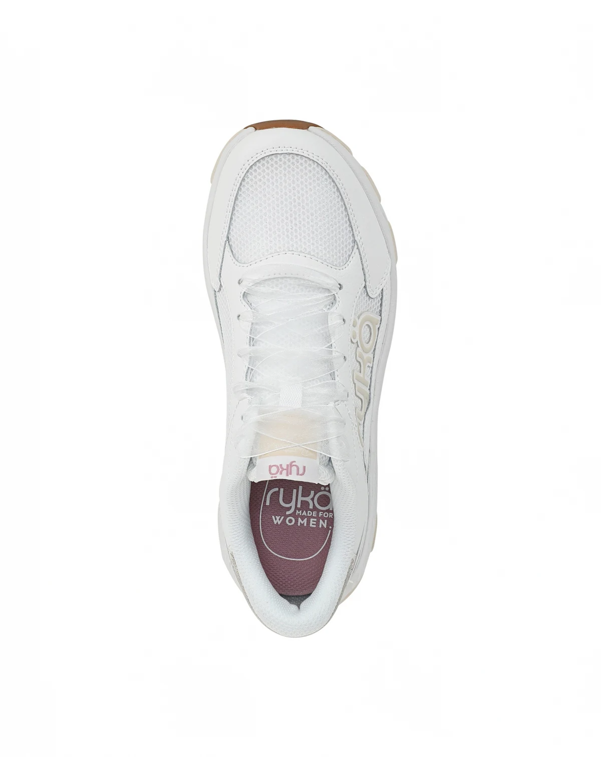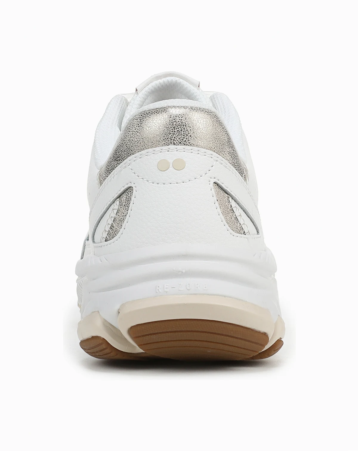 Get cushioning and shock absorption to the max in this retro-inspired version of our best-selling Devotion X women's walking sneaker. BEST FOR: High-performance fitness walking. PERFORMANCE TESTED: Proven in lab testing to provide low deceleration, braking, and impact forces and very high perceived cushioning. INNOVATIVE TECH: Full-length RE-ZORB® responsive cushioning for shock absorption and impact protection, plus lightweight RE-ZORB® LITE pads in the forefoot and heel. MATERIALS: Retro-inspired styling with breathable air mesh and leather and synthetic overlays and padded tongue and heel collar. CLOSURE: Secure lace-up front. INSOLE: Anatomical heel with extra arch support and heel support. MIDSOLE: Lightweight EVA for soft cushioning and Full-length RE-ZORB® responsive cushioning. OUTSOLE: Durable two-piece rubber sole for grip and Built-in compression channels for shock absorption. WEIGHT: 278 g/9.8 oz per shoe. HEEL-TO-TOE DROP: 10 mm.