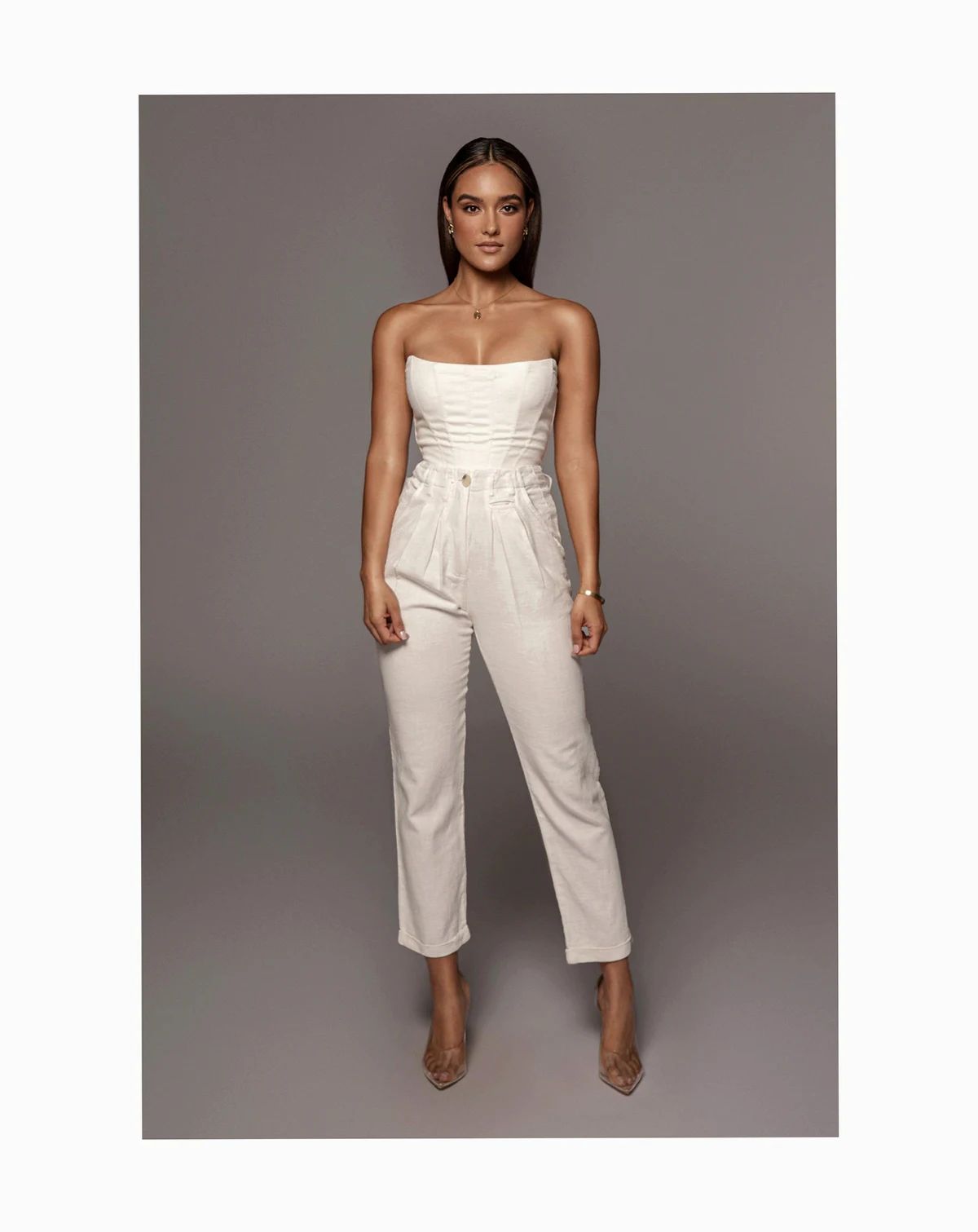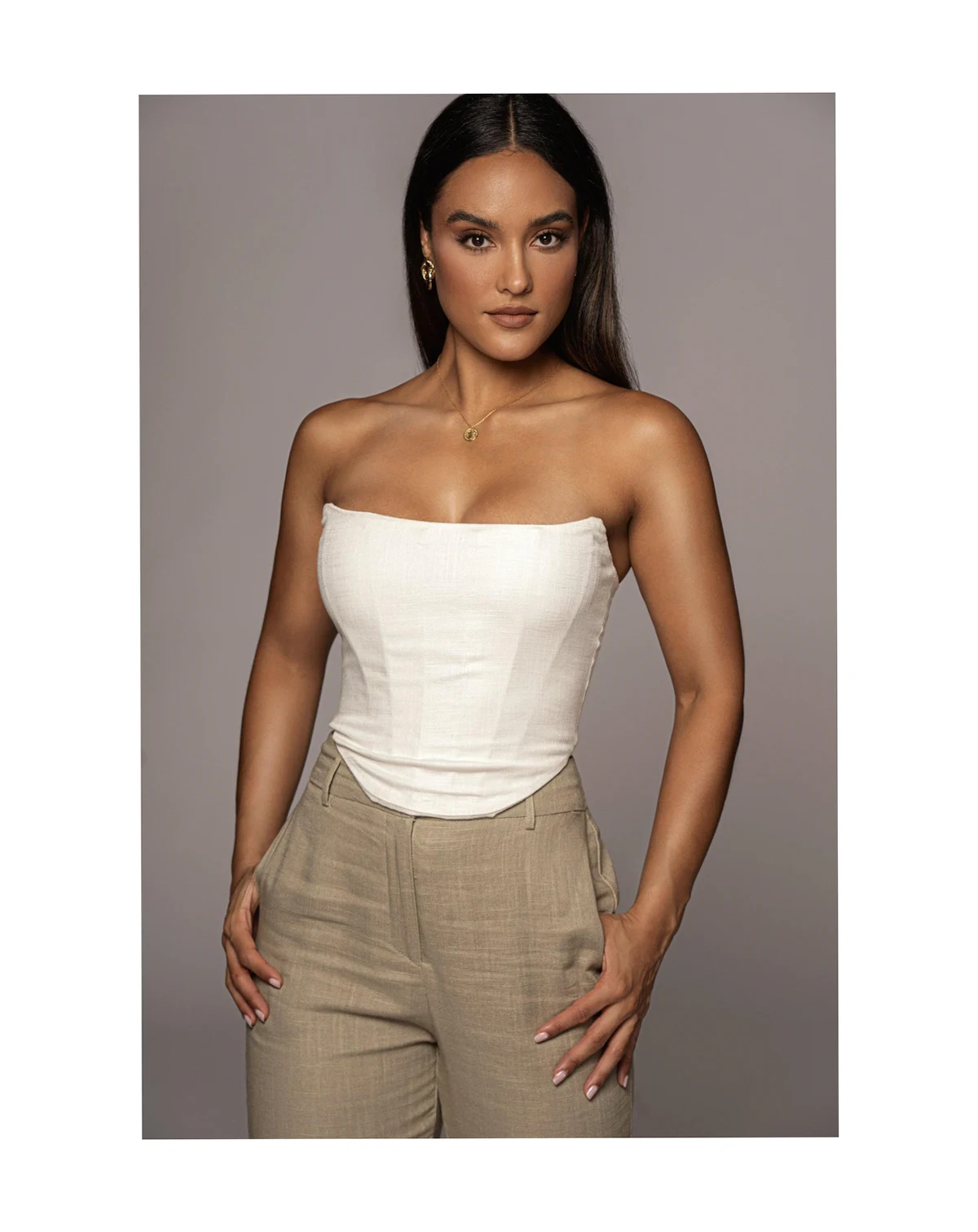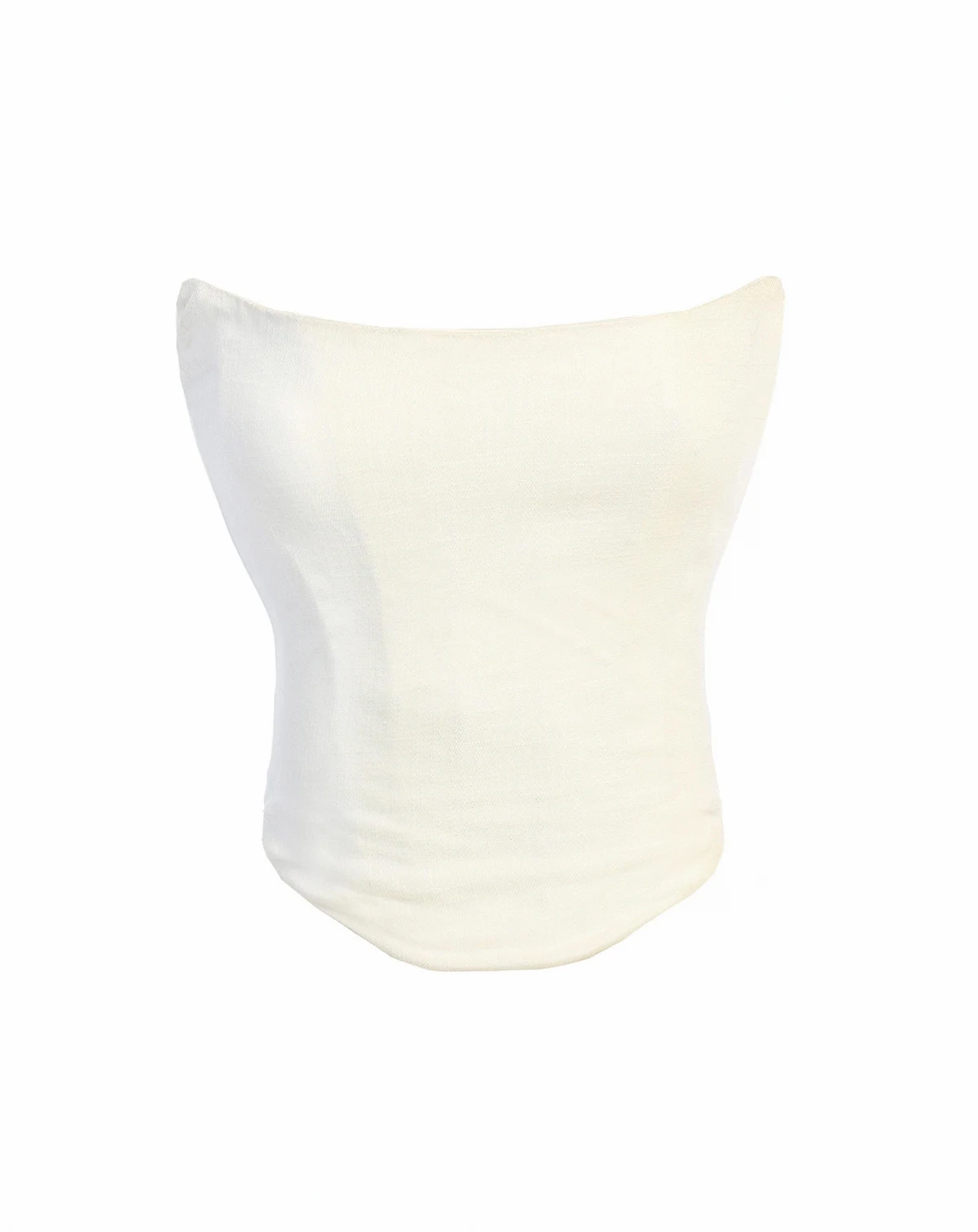 You'll be the epitome of style when wearing our Black Fenix Reversible Linen Corset. This eye catching corset showcases a strapless neckline with boning throughout the front and back for added structure and support. Crafted in a Cotton/Linen blend, this corset top is designed with a reversible feature consisting of a flattering front with boning detail and the other with a solid bodice for a smoother look. Complete with an elastic back for flexible fitting. Gold tone zipper closure. Stretchy.