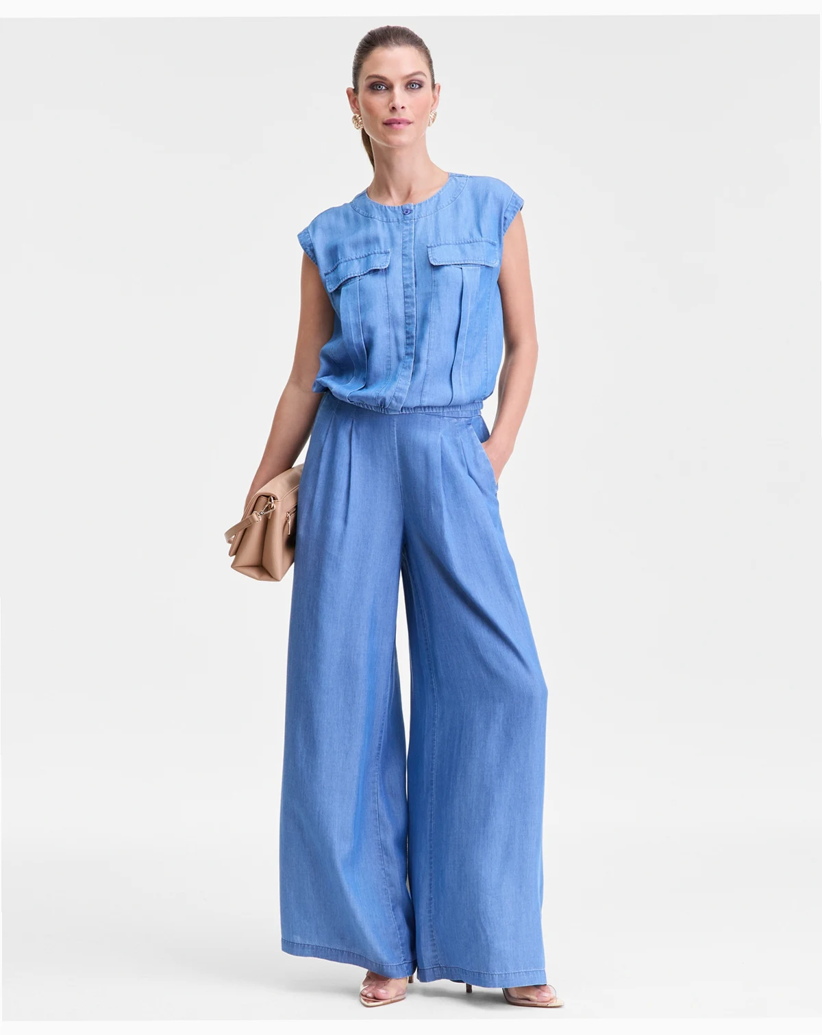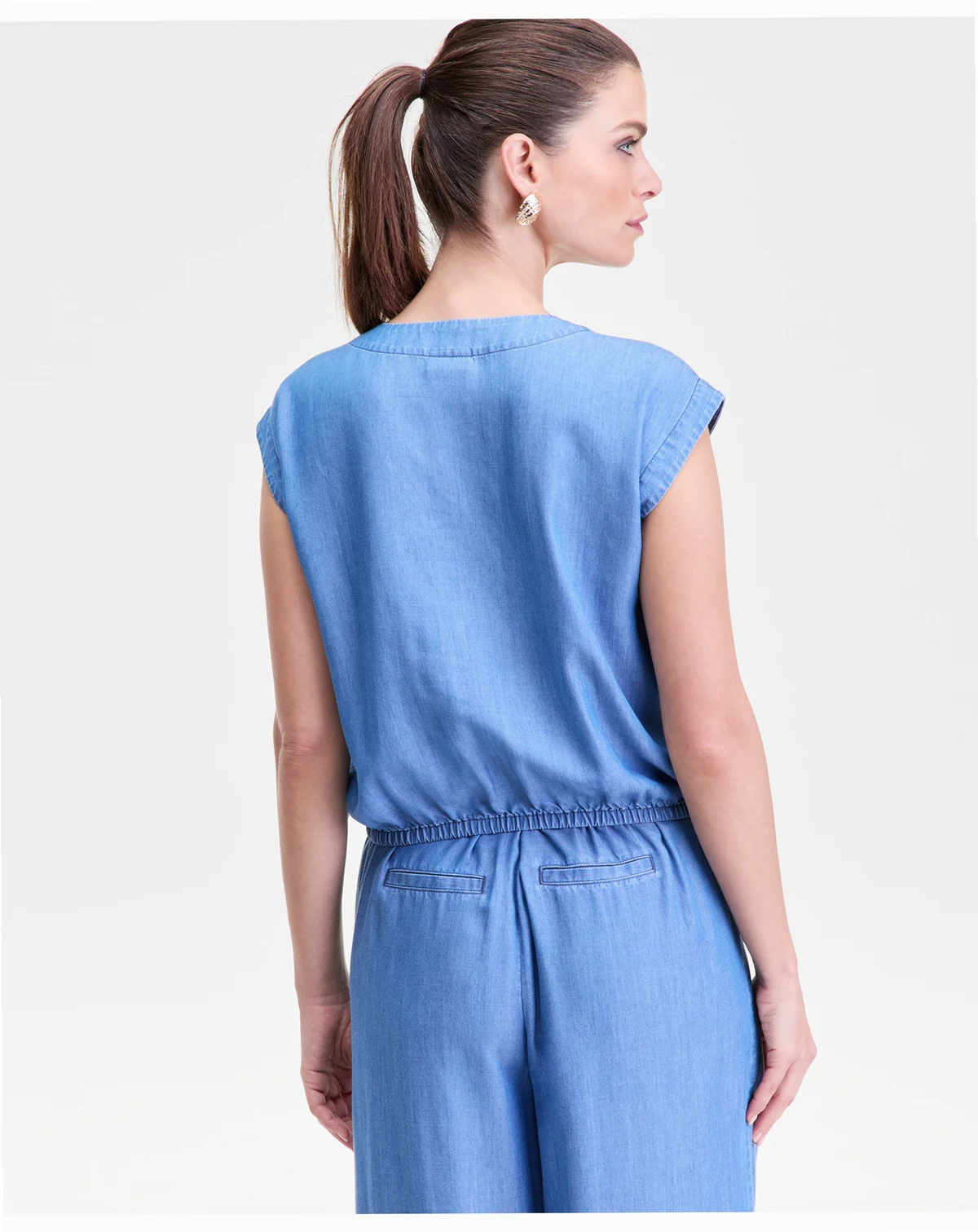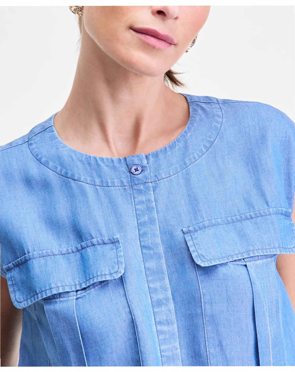 Utility details update this sleeveless chambray shirt from I.N.C. International Concepts, a breezy and versatile piece. ABOUT THE BRAND: I.N.C. is inspired by fabulous women—always bold, confident, and stylish.