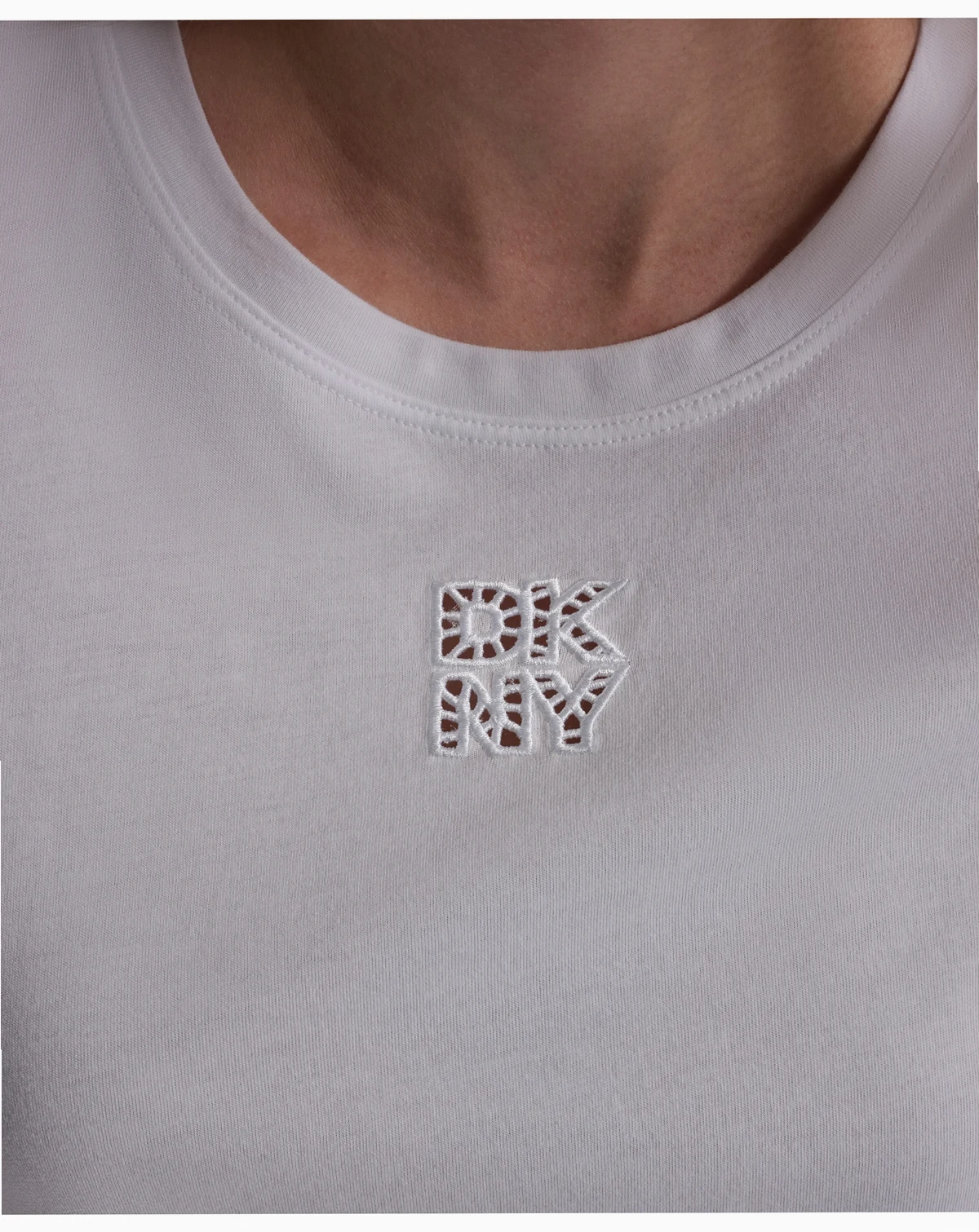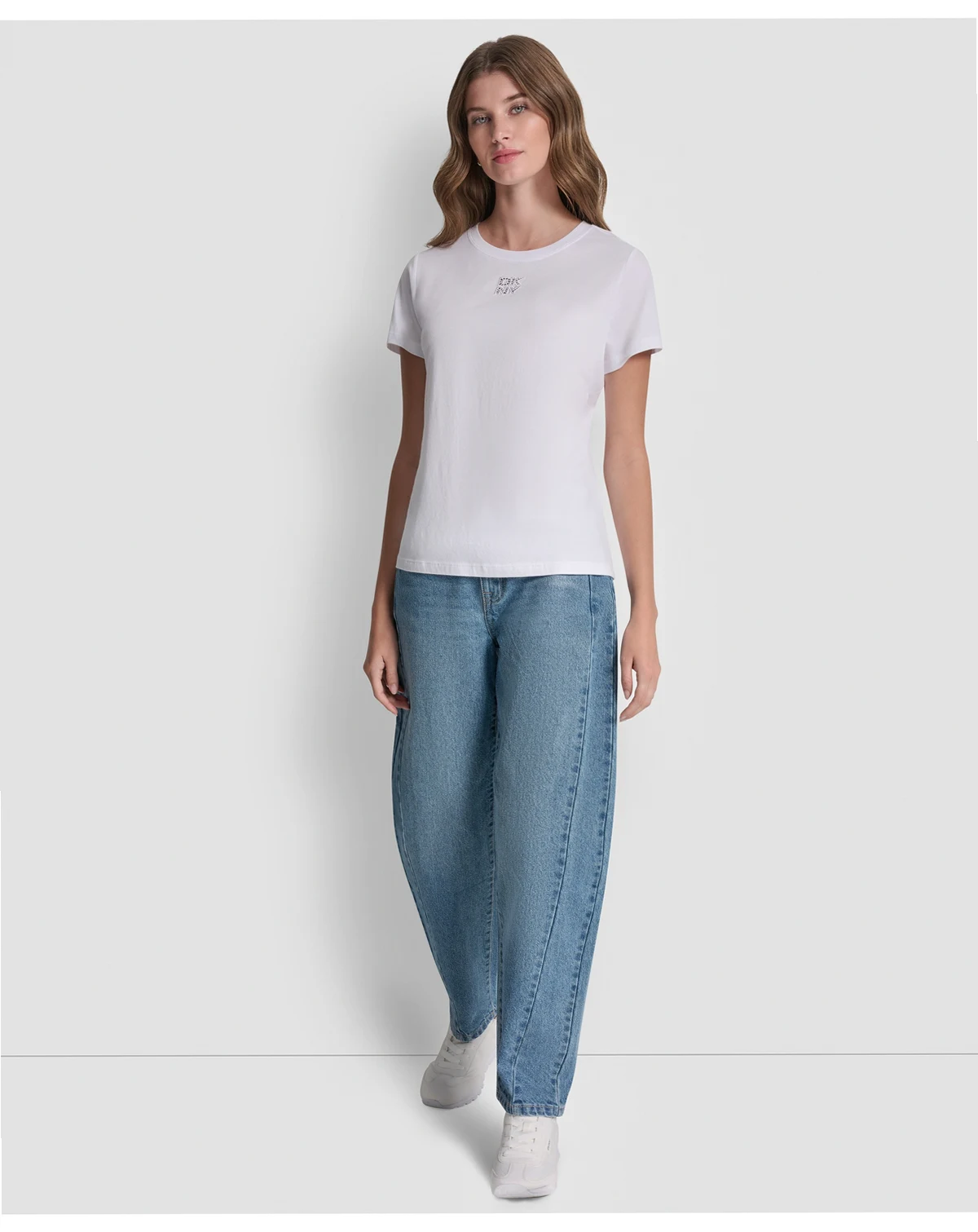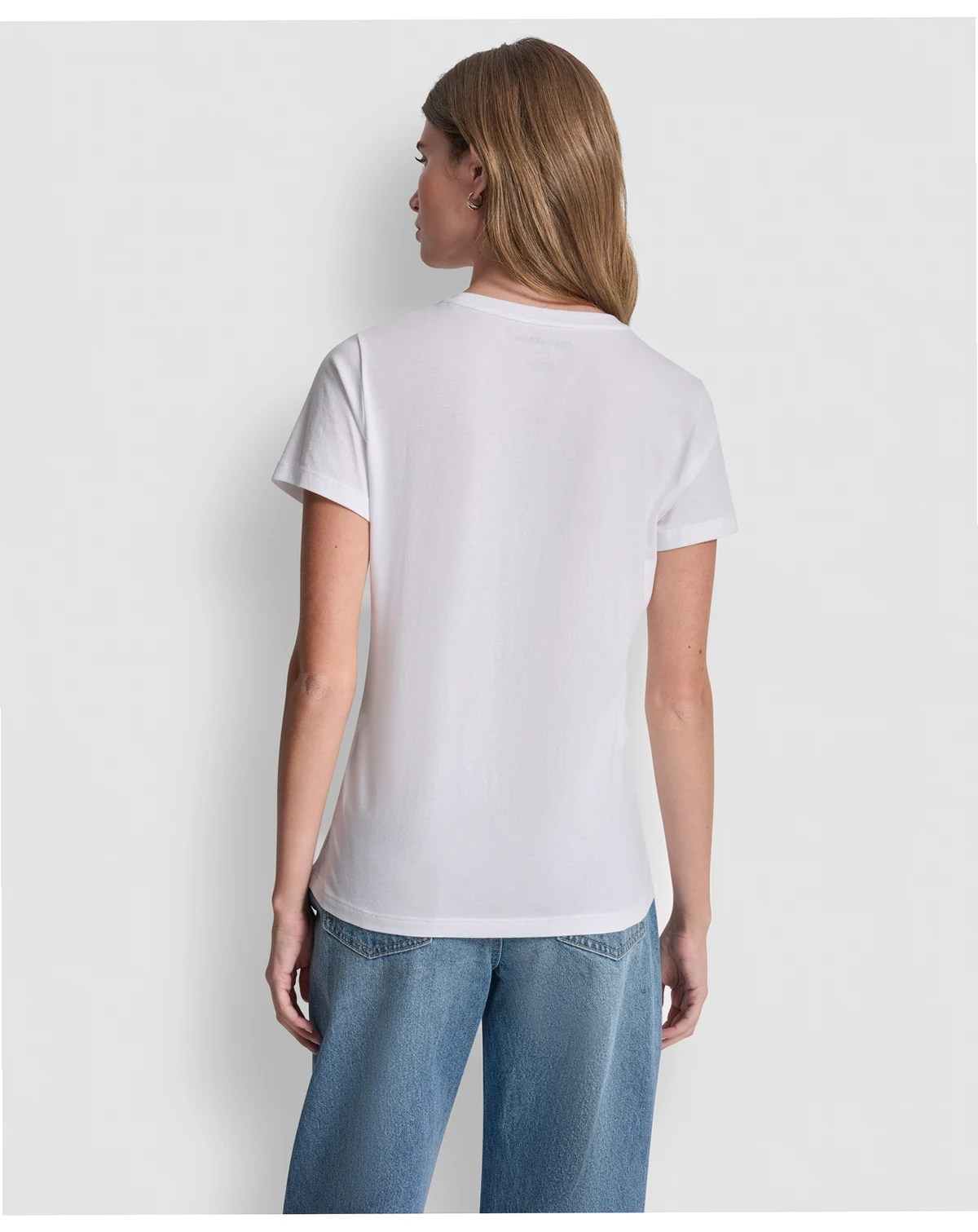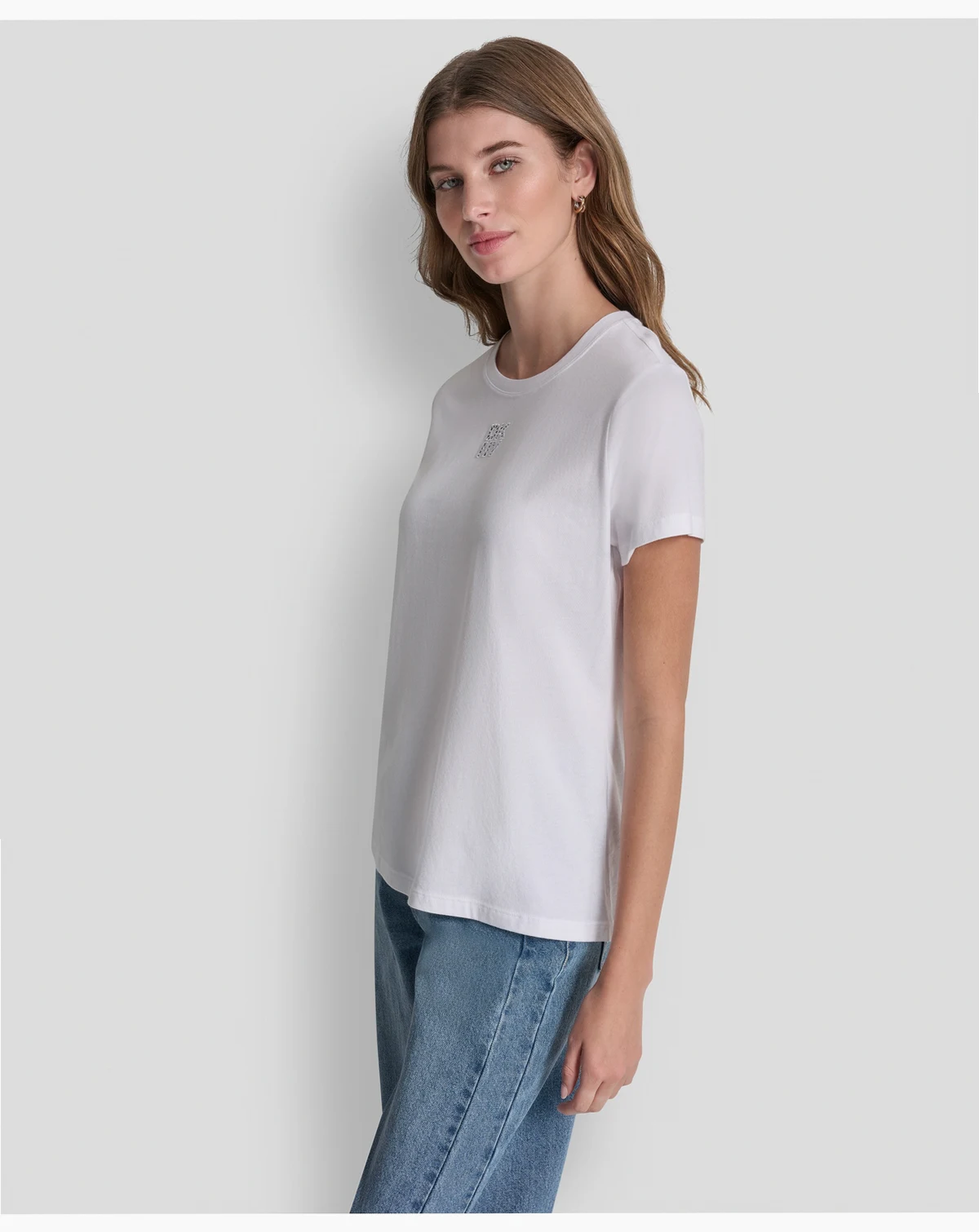 Make a subtle statement with this DKNY Jeans T-shirt, featuring a stacked eyelet logo design at the chest. The crewneck and relaxed fit provide everyday comfort.
