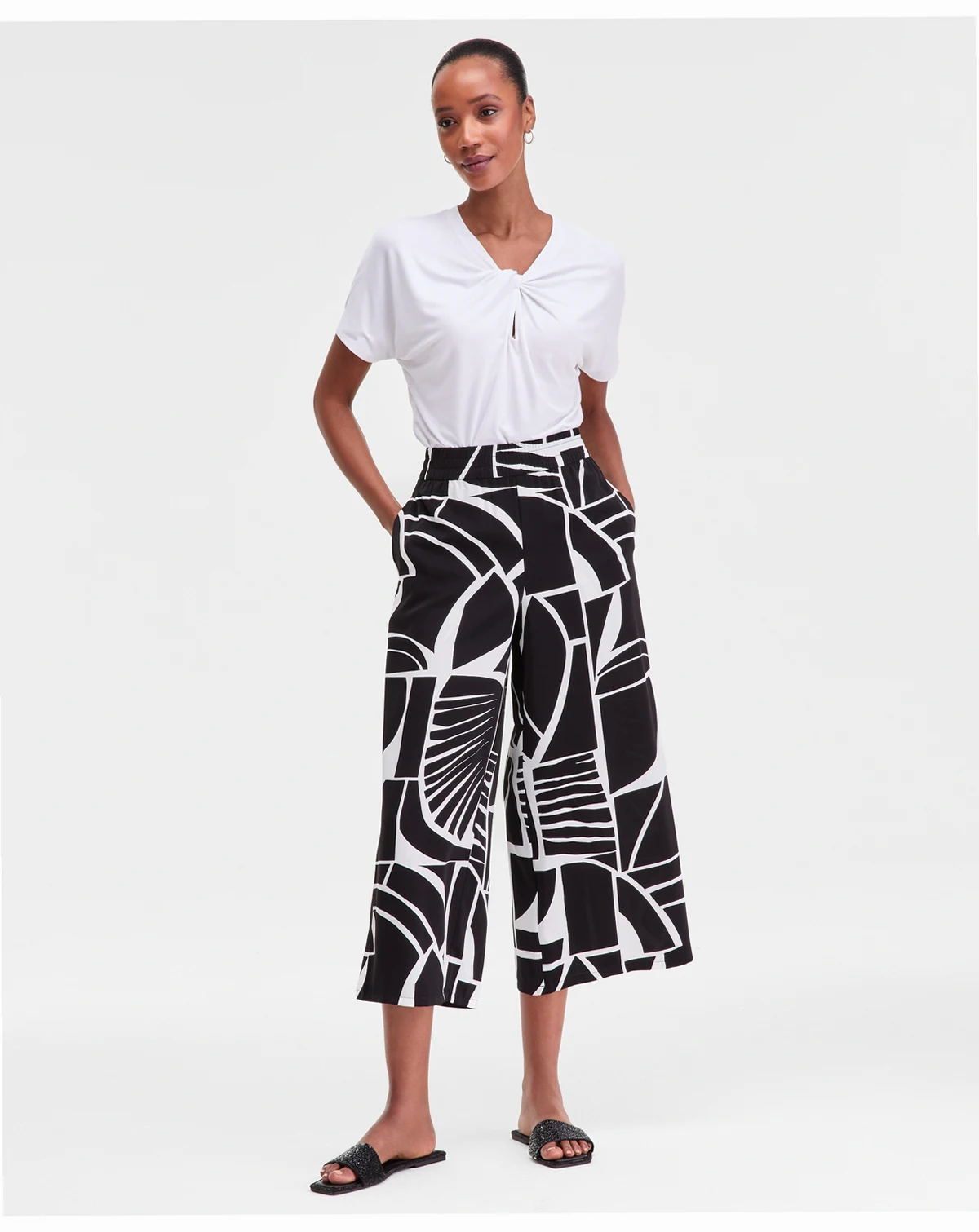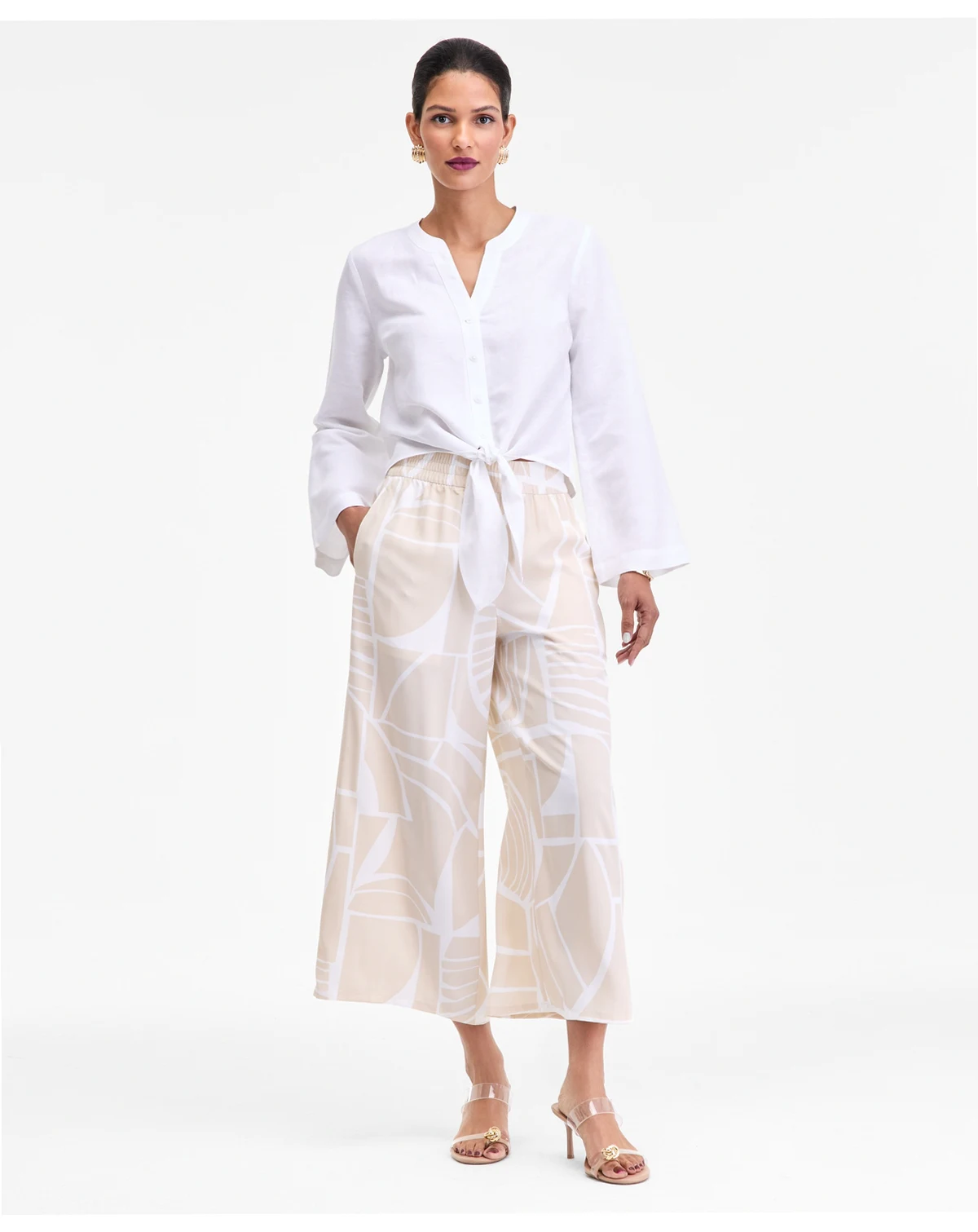 Women's Cropped Printed Pull-On Wide-Leg Pants, Macy's Exclusive