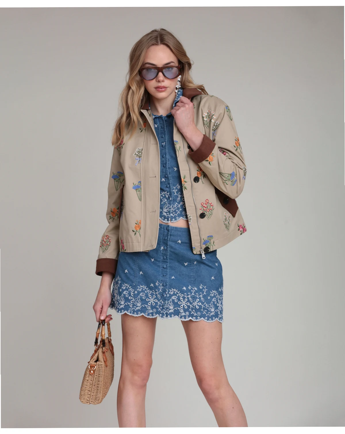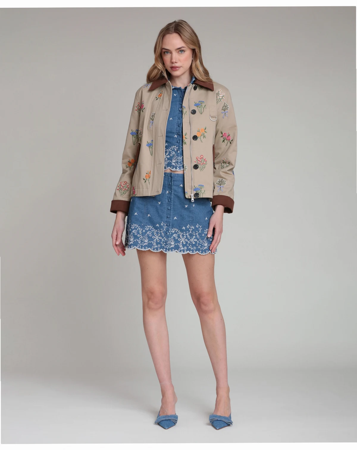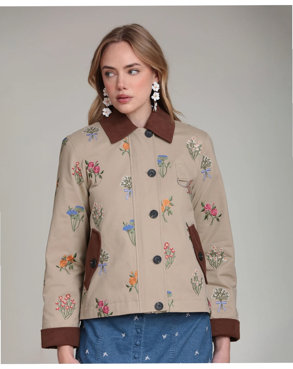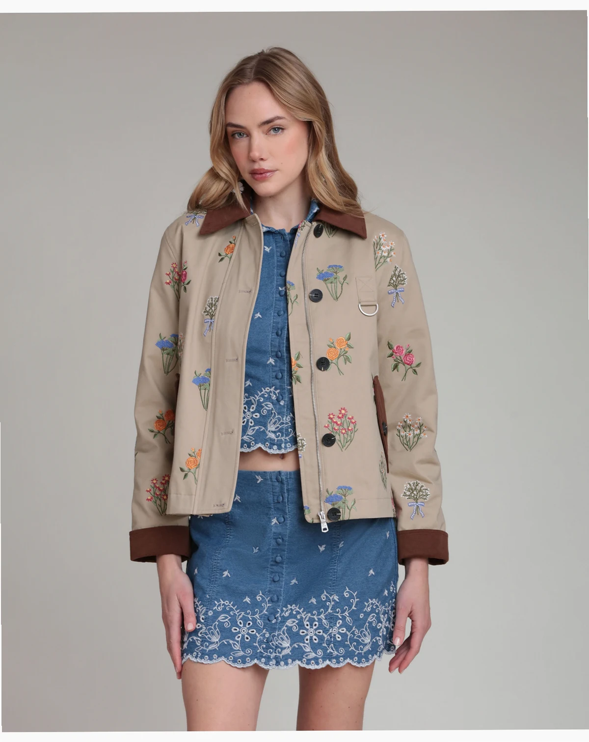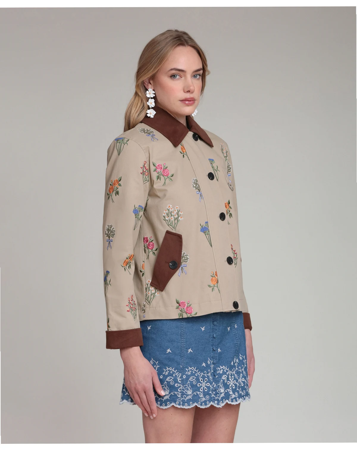 Polished practicality defines the button-front closure and functional pockets on this Avec Les Filles jacket with a spread collar and long sleeves. The short, chore-inspired design delivers a versatile, polished appeal.