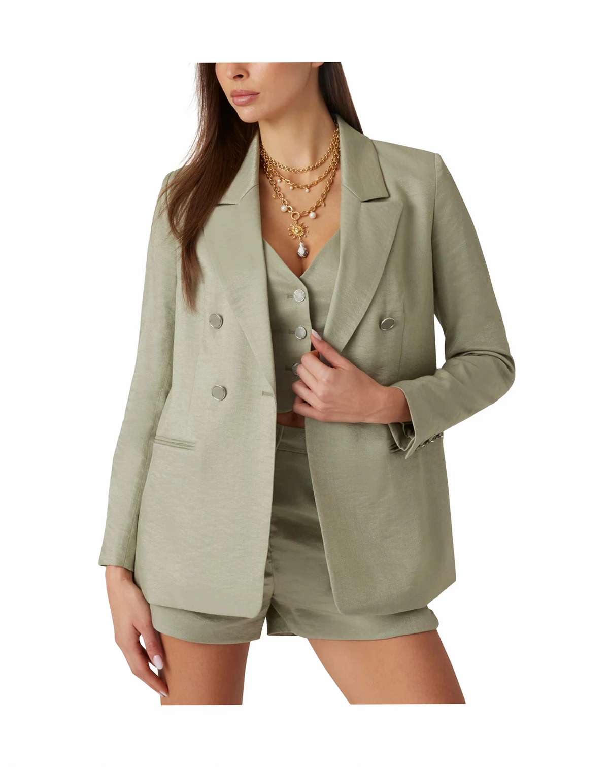A double breasted silhouette ensures a tried and tested style for this sleek lapel jacket by GUESS.
