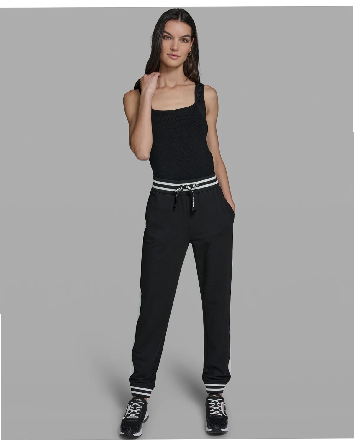 Contrast ribbing accents the hem and waist of these pull-on joggers from KARL LAGERFELD PARIS. The tapered leg offers a comfortable, athletically inspired silhouette.