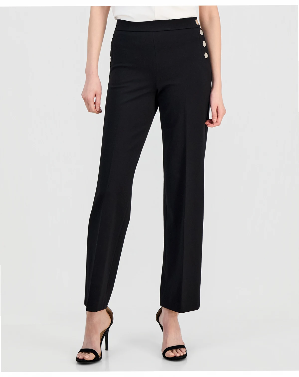 Approx. inseam: 27-1/2"; Mid rise; approx. back rise: 16-1/4"; leg opening: approx. 19"; Designed to fit and flatter frames 5'4" and under
