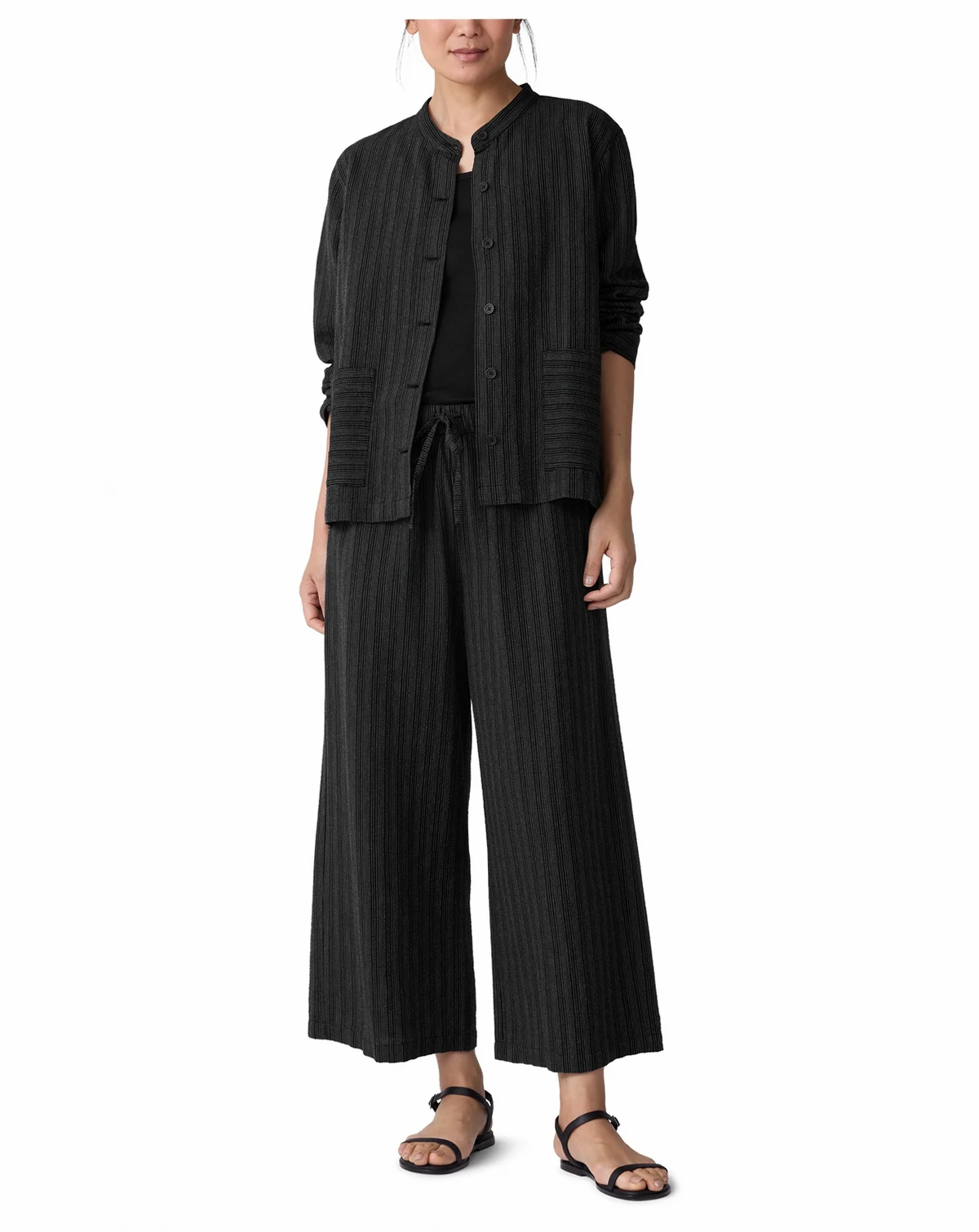Step into modern sophistication with these Eileen Fisher wide-cropped pants, crafted with a classic yarn-dyed stripe pattern. The high-waisted silhouette delivers a flattering, contemporary fit.