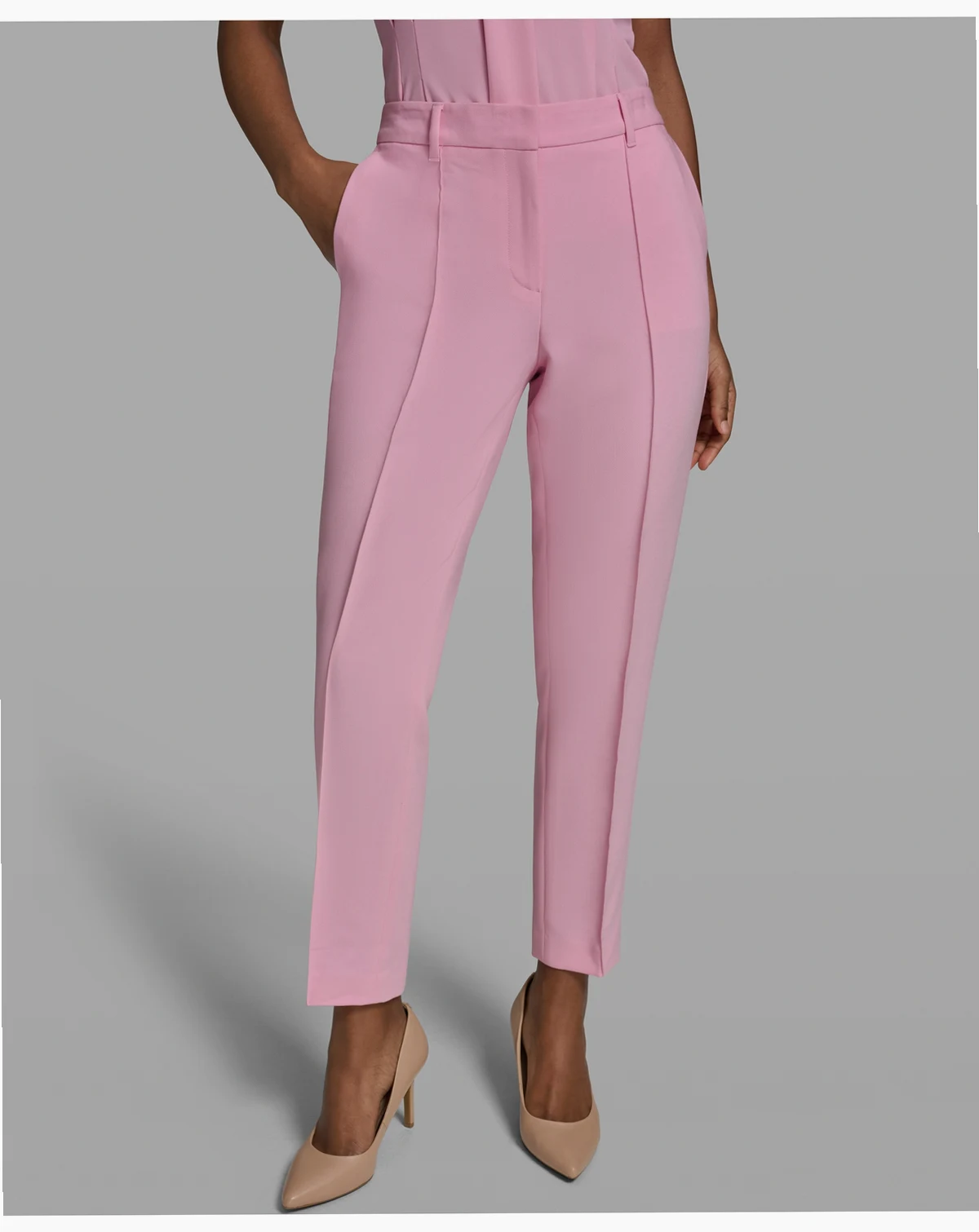 Elevate your professional style with these straight ankle pants from KARL LAGERFELD PARIS, crafted with a mid-rise fit and invisible front zipper for a polished silhouette. Belt loops and two hip pockets add practical touches to this versatile wardrobe essential.