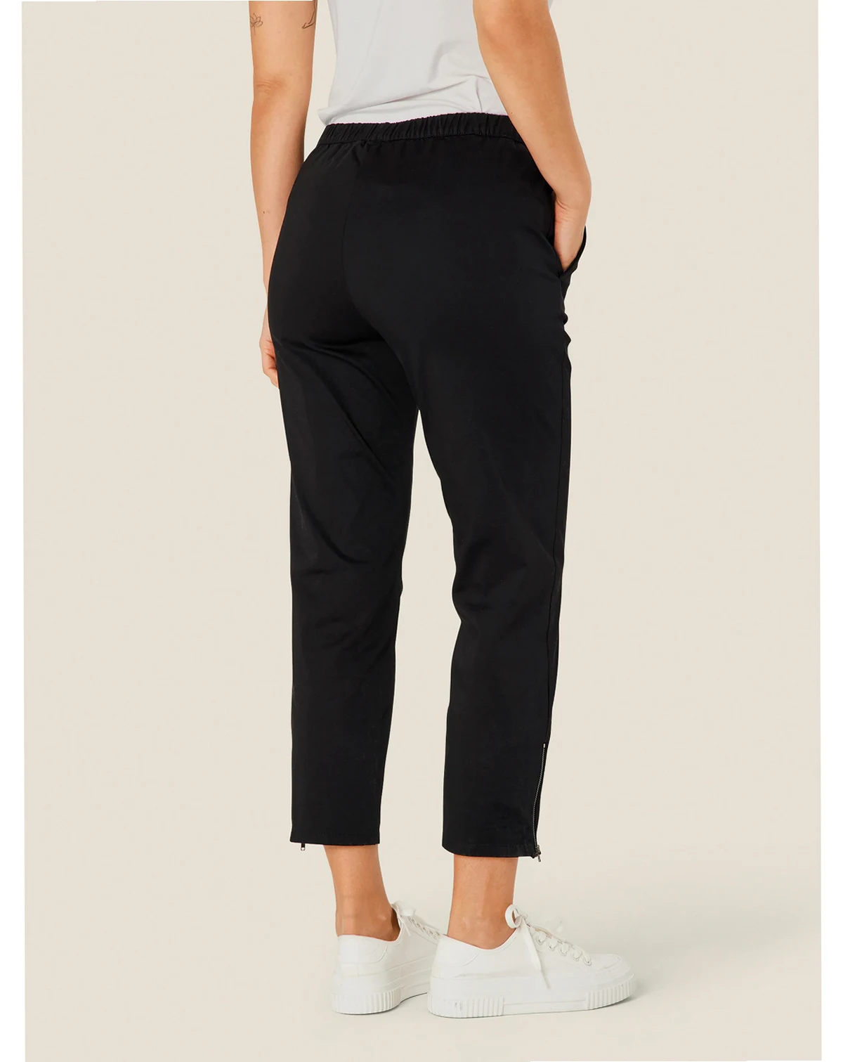 Simple, elegant pants in soft cotton with stretch, that makes them lovely to wear. The pants have an elasticated waistband at the back and are designed with zip slits at the bottom of the legs to contrast the stylish look.