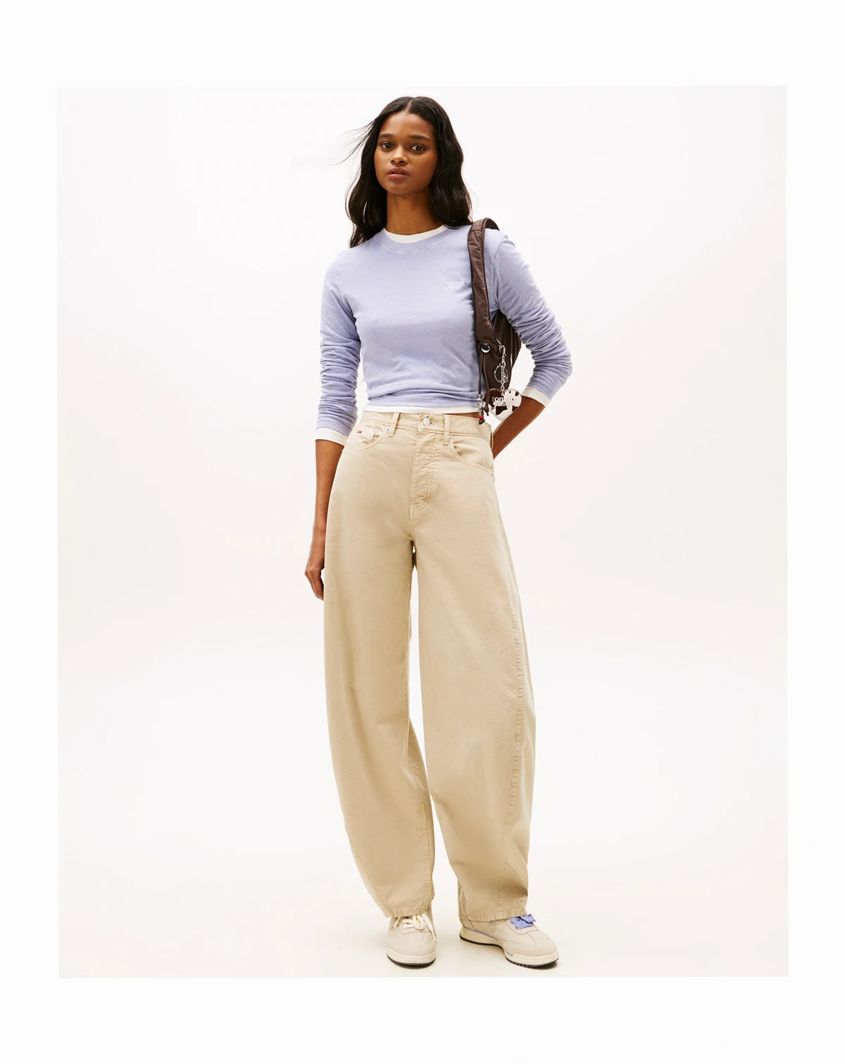 Boasting a garment-dyed finish and a relaxed short length, this Tommy Jeans tee offers a modern and broken-in feel. The slim fit and long sleeves create a comfortable and stylish casual top.