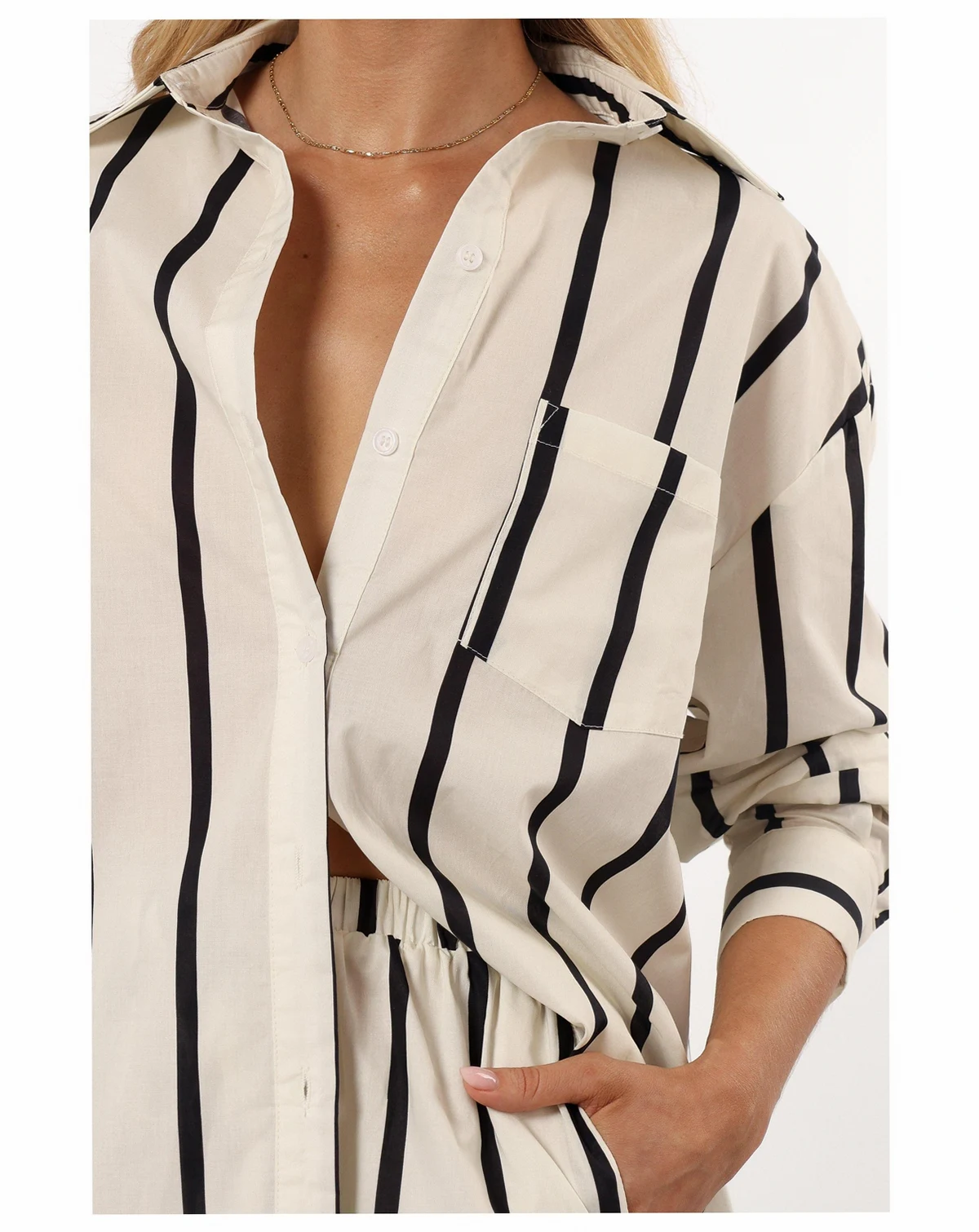 This designed piece features a crisp collar and functional buttons down the front, ensuring both ease of wear and a polished look. The long sleeves culminate in button-close cuffs, allowing for adjustable comfort and a tailored fit to suit any occasion.
