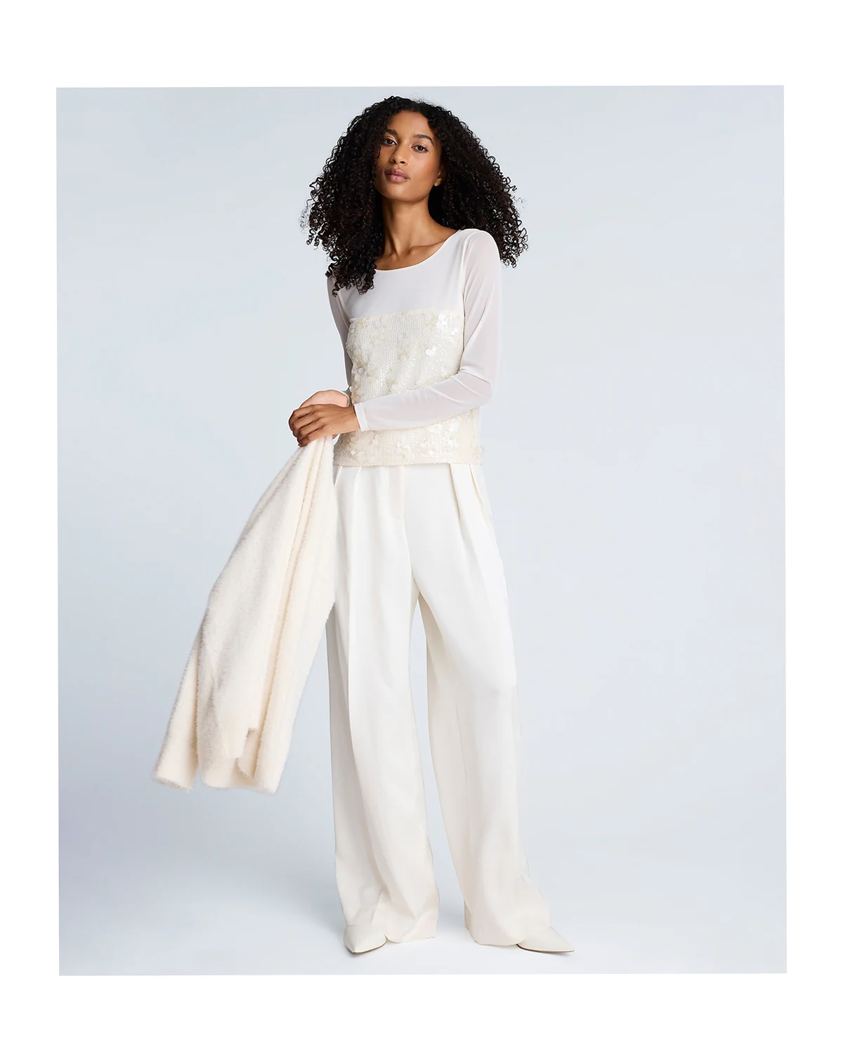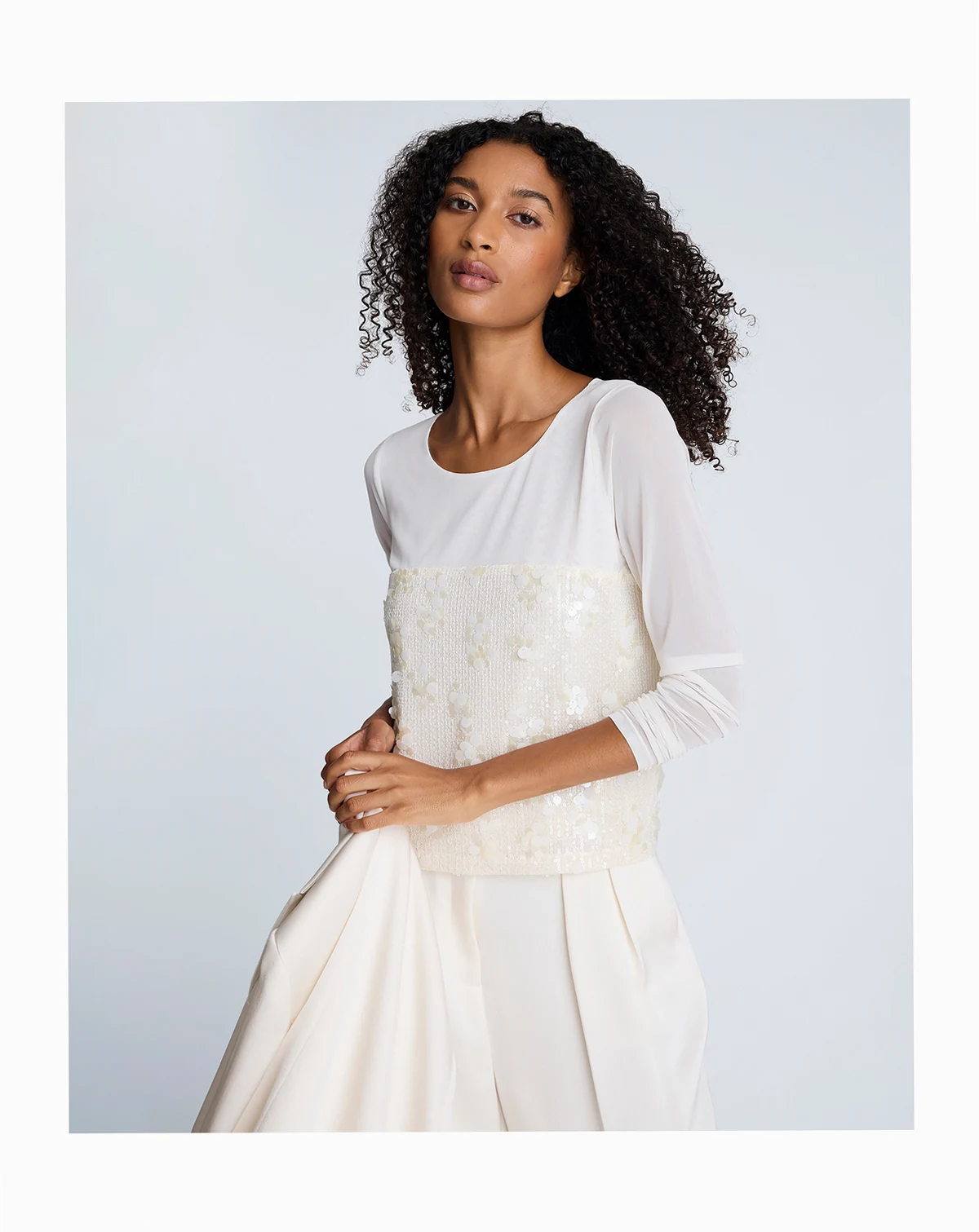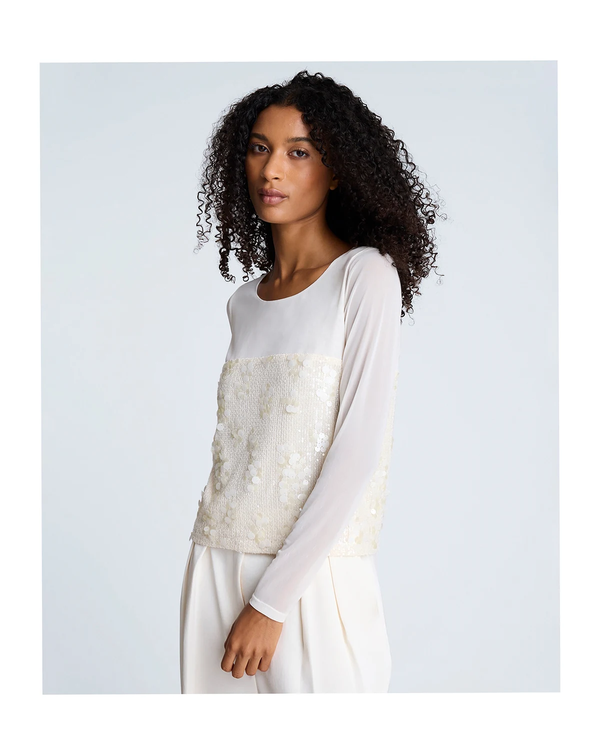Women's Paillette Mesh Long-Sleeve Top