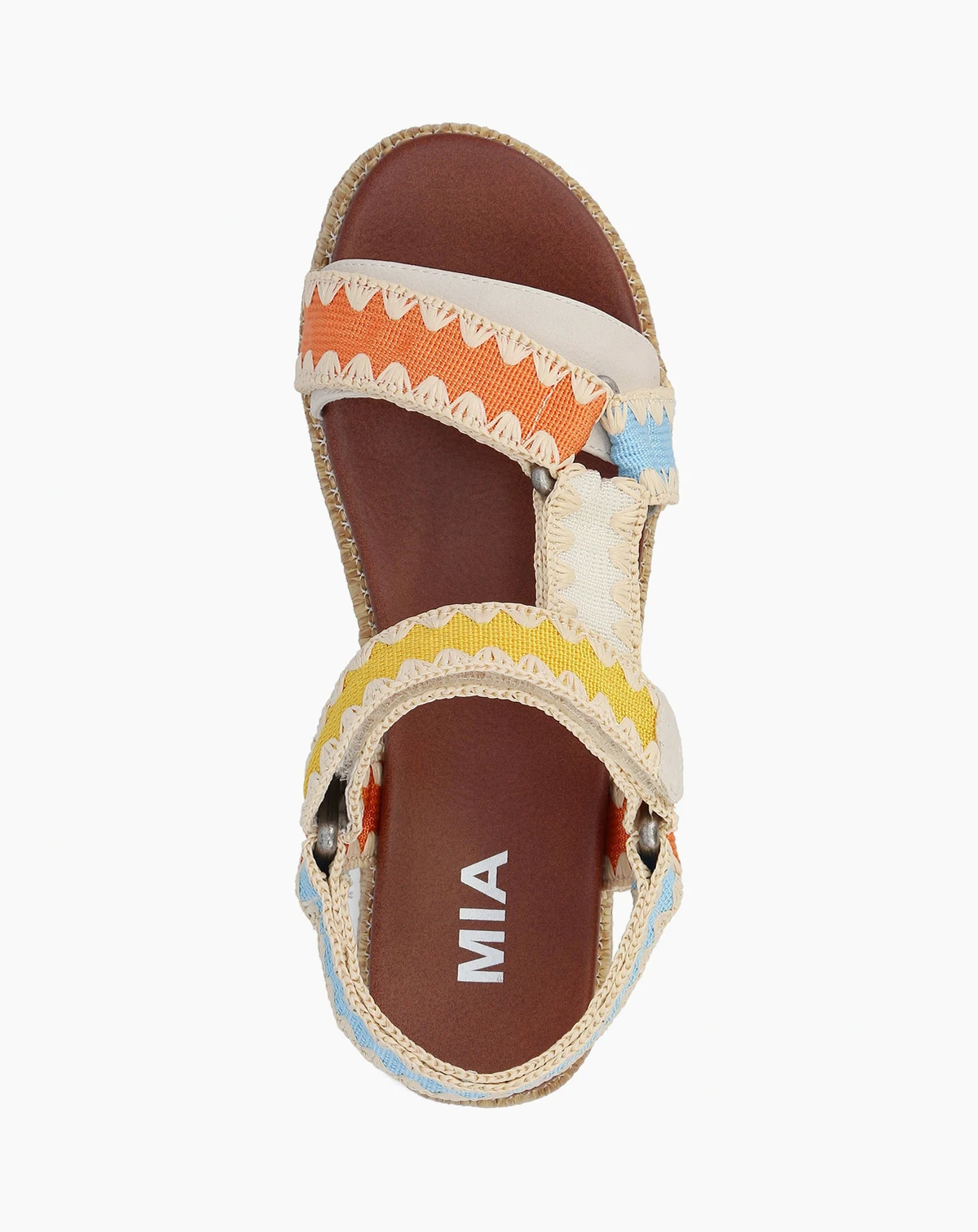 Add some fun to your wardrobe with MALTI. Featuring a 1.8-inch raffia wrapped platform, colorful stitching detail and our MIA signature footbed for ultimate comfort. Pair these with a breezy sundress for fun days under the sun.