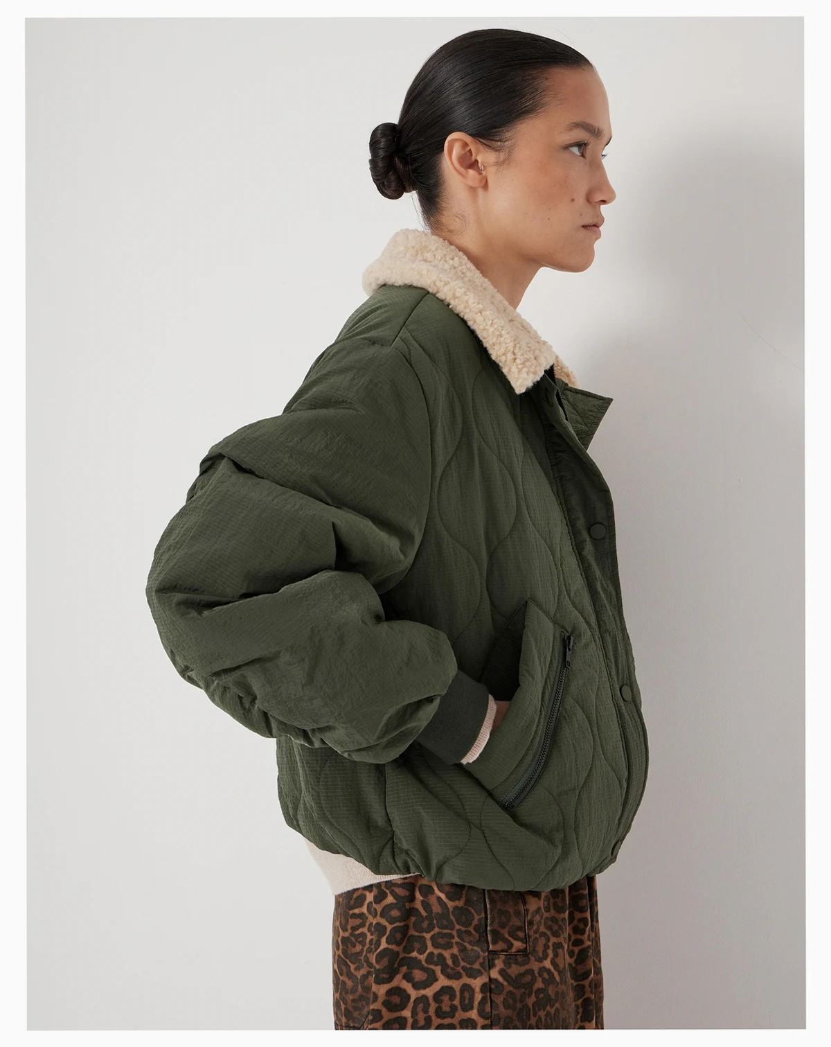 Determined to not let the cold stop you getting outside this season? You'll be needing a great winter jacket like this quilted bomber, complete with a cosy teddy collar and all-over quilting for warmth. It's made from durable ripstop fabric with a subtle sheen, and we love how the cropped shape keeps the look on-trend. Cinch in the drawcord hem to play up the volume or let out the length for a more relaxed fit.