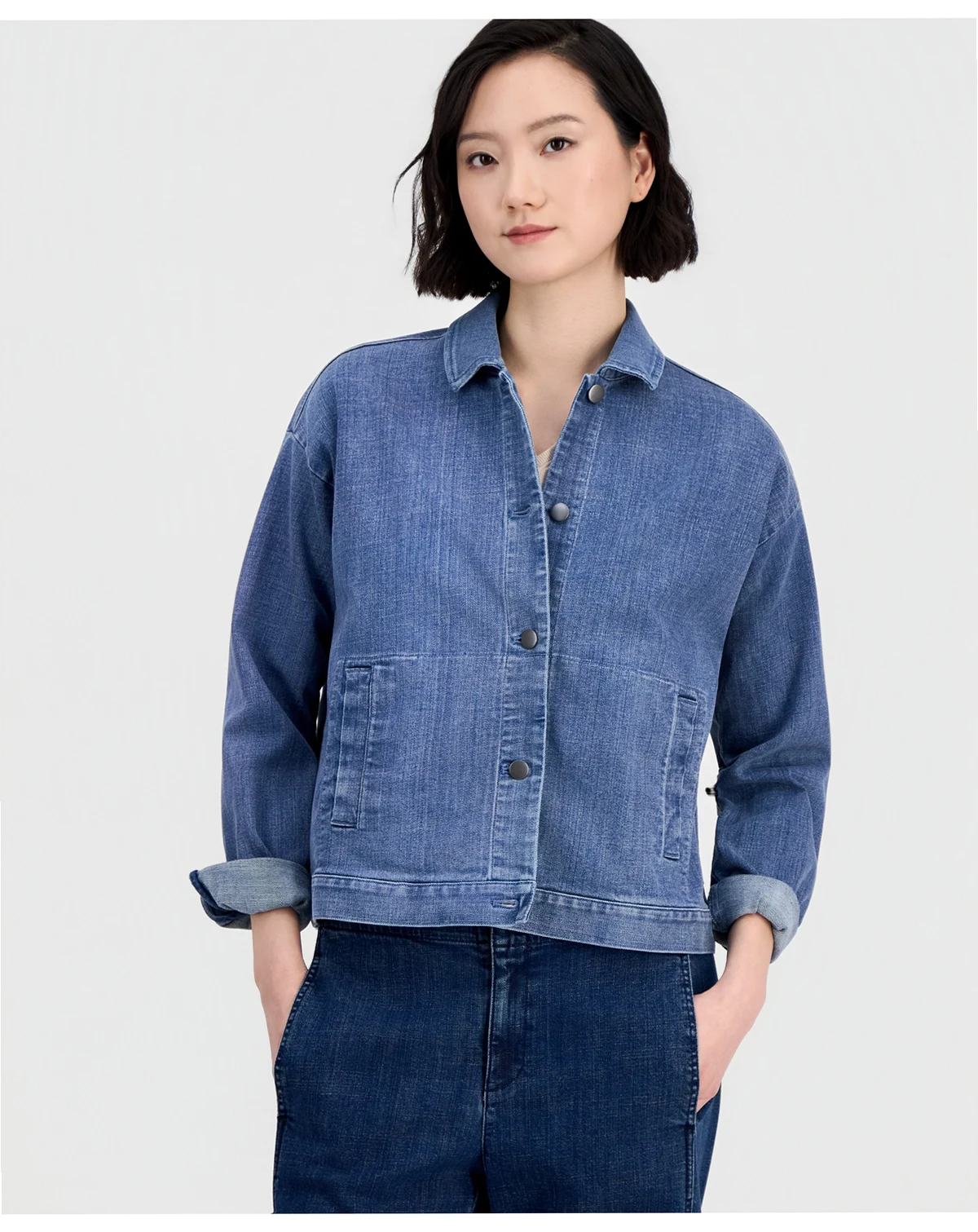 An update to classic denim, this Eileen Fisher jacket is designed with a touch of stretch for a look that moves with you.
