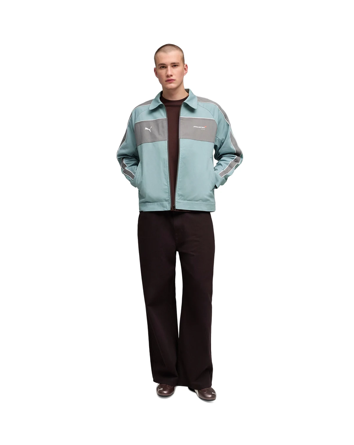 Street-meets-track attitude defines this Puma McLaren T7 jacket, designed with a full-zip front for adaptable styling. A raised collar enhances structure, and regular shaping supports confident layering.