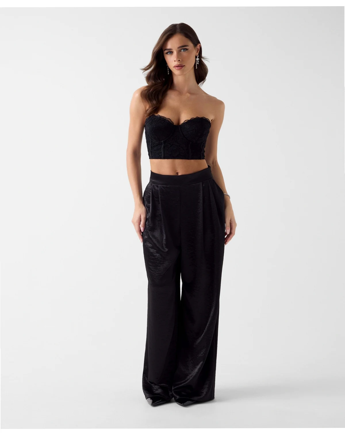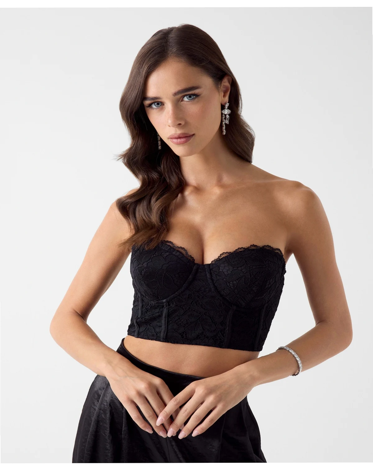 Structured elegance meets versatile design in this GUESS top, perfect for dressing up or layering under a jacket for casual-chic appeal. Underwire support and detachable straps allow for customizable wear, while delicate lace trim adds texture and femininity.