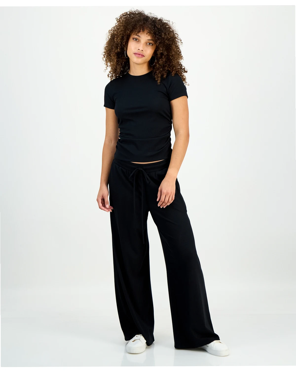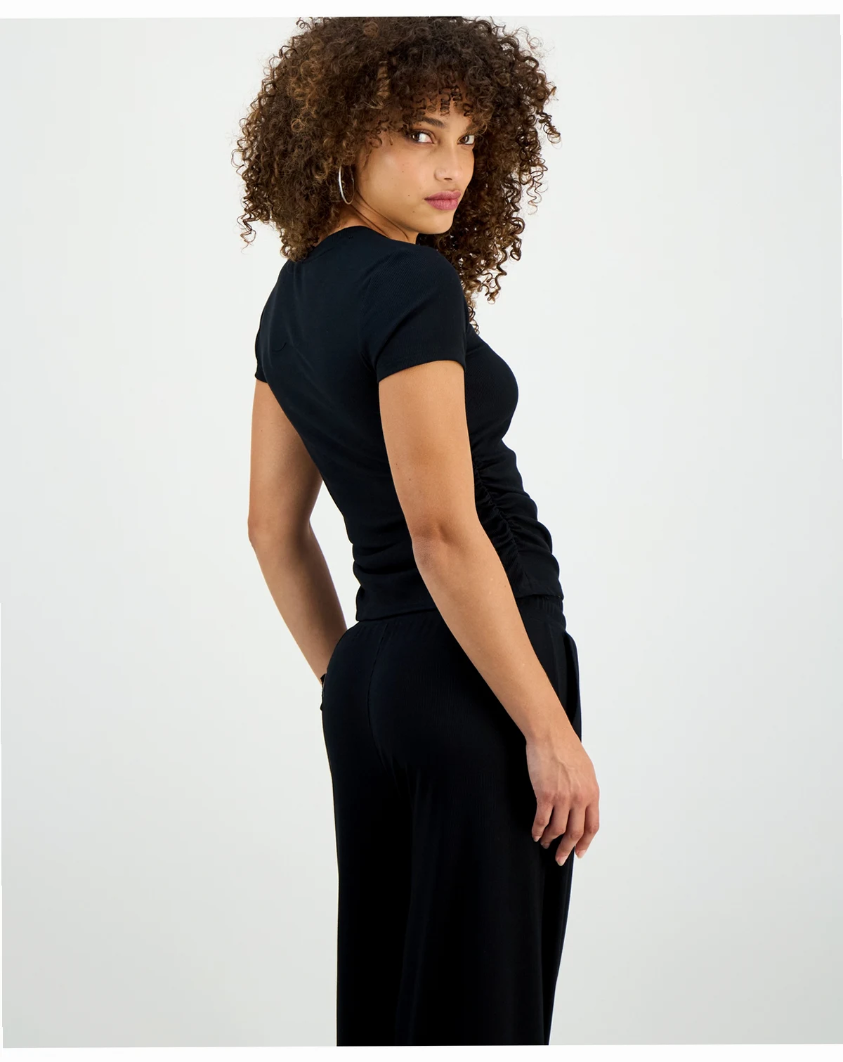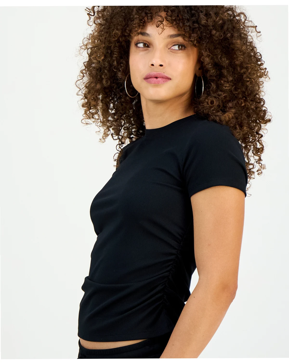 Petite Side-Ruched Ribbed Knit T-Shirt, Macy's Exclusive