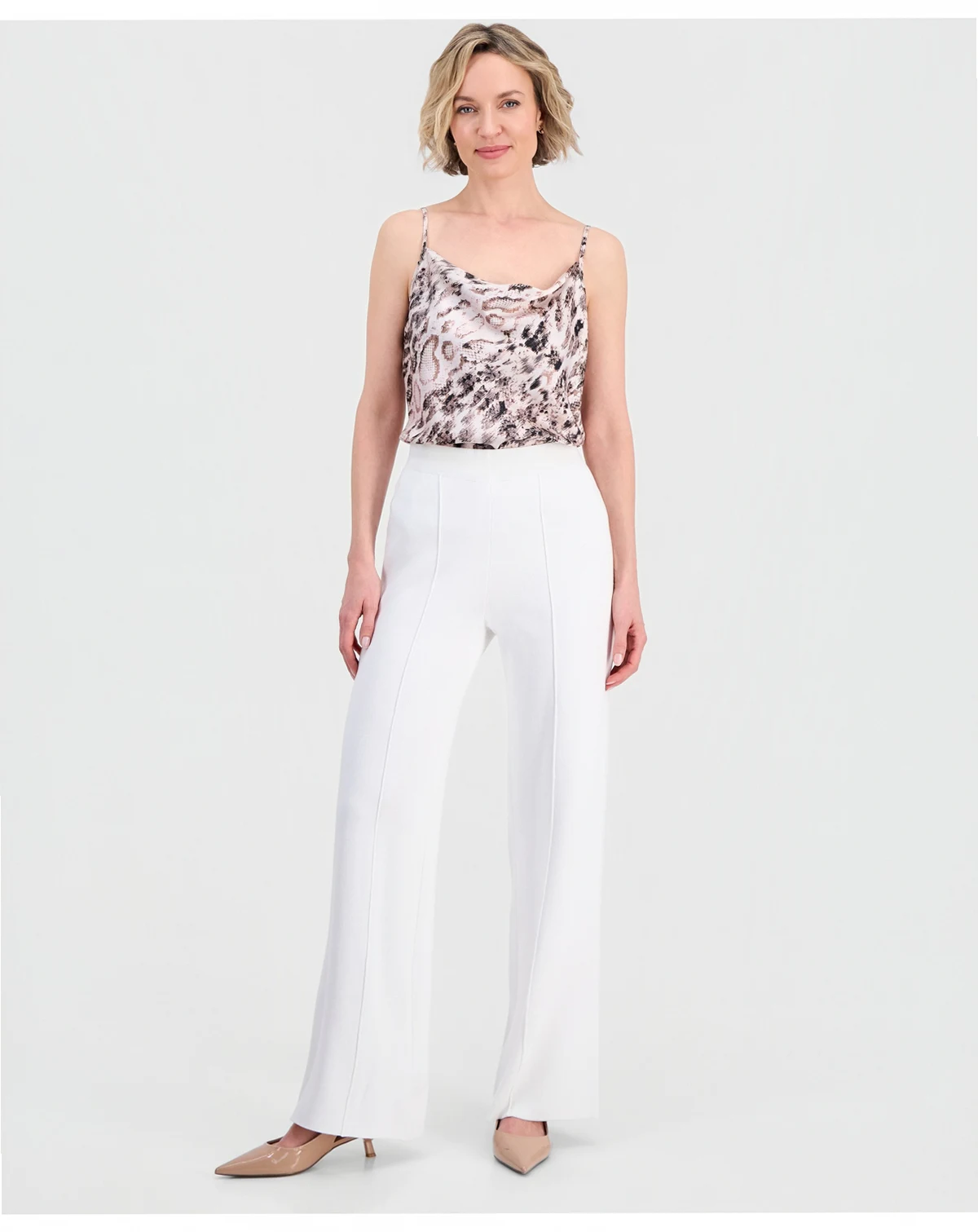 Experience effortless comfort with these Tahari ASL sweater knit pants, featuring a pull-on style for easy wear. A mid-rise waist provides a flattering, versatile fit that's suitable for lounging or everyday styling.