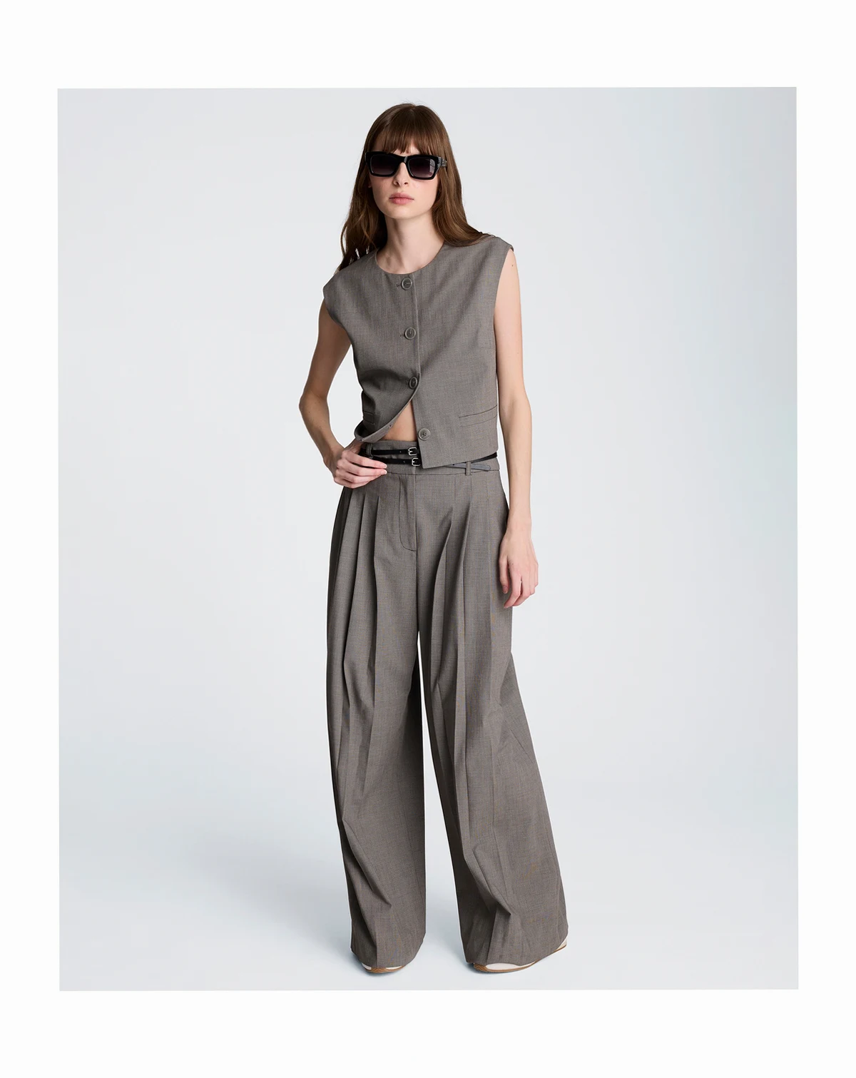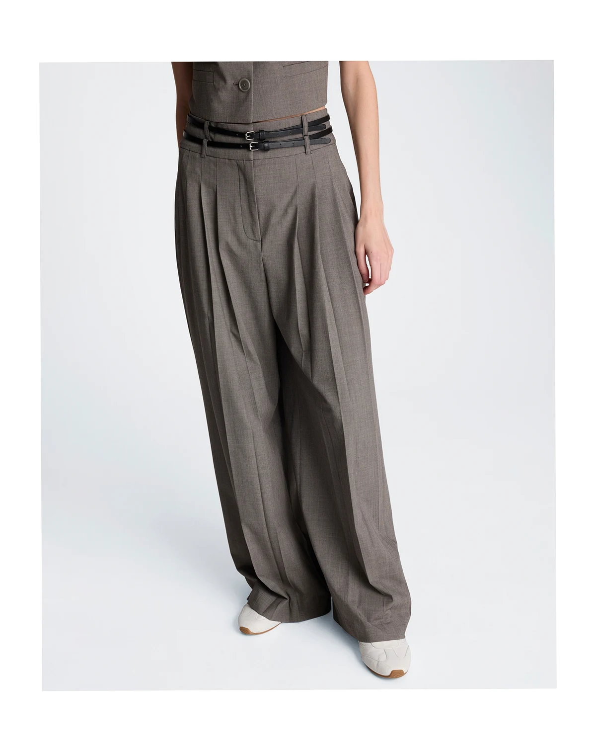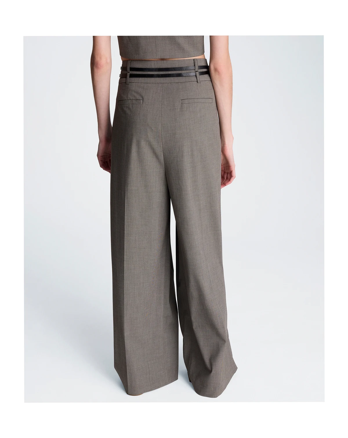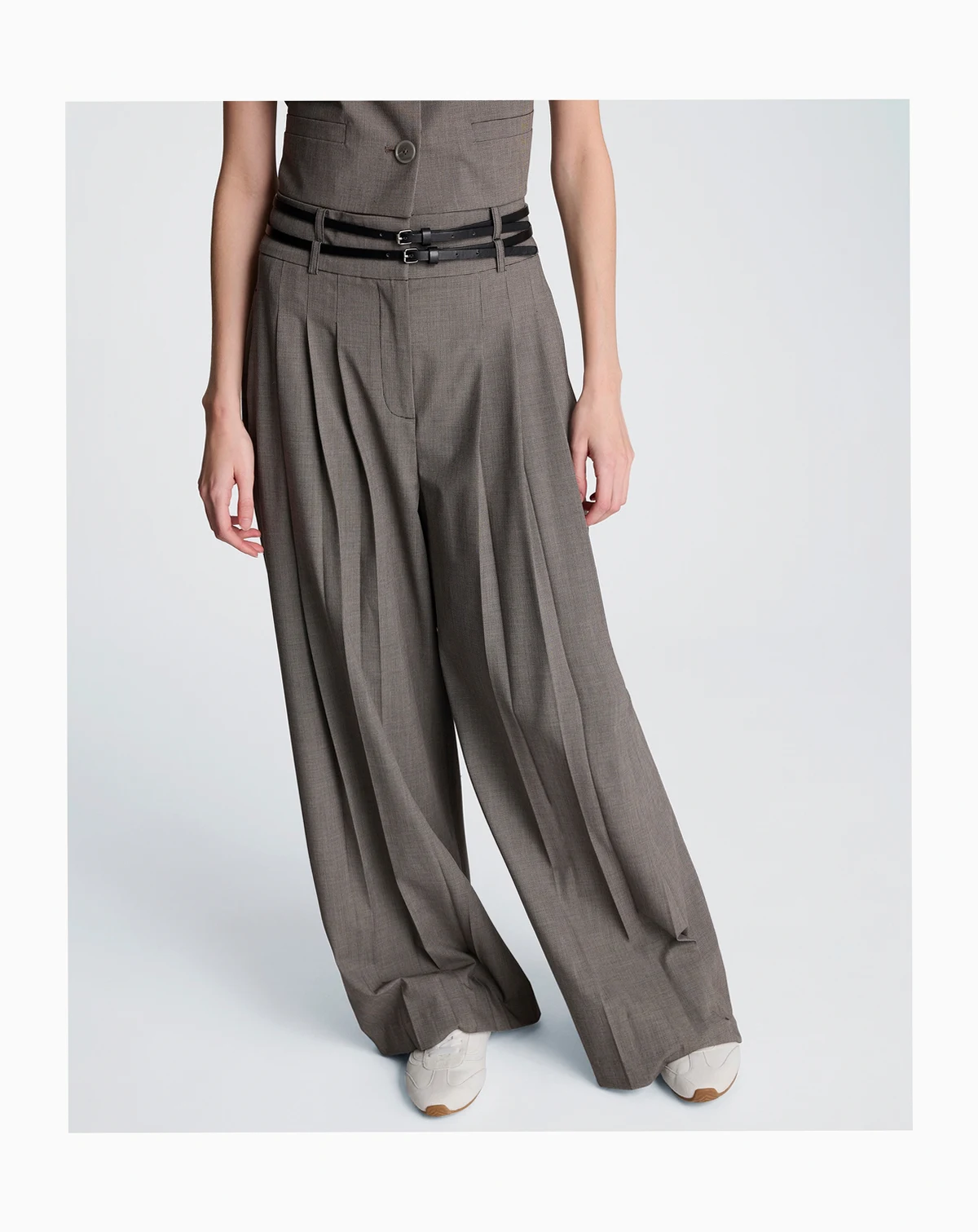 Belted with a double novelty detail, these Kenneth Cole trousers present a high-rise, wide-leg silhouette for a bold, fashionable statement. A fly-front closure and on-seam pockets add polished functionality.