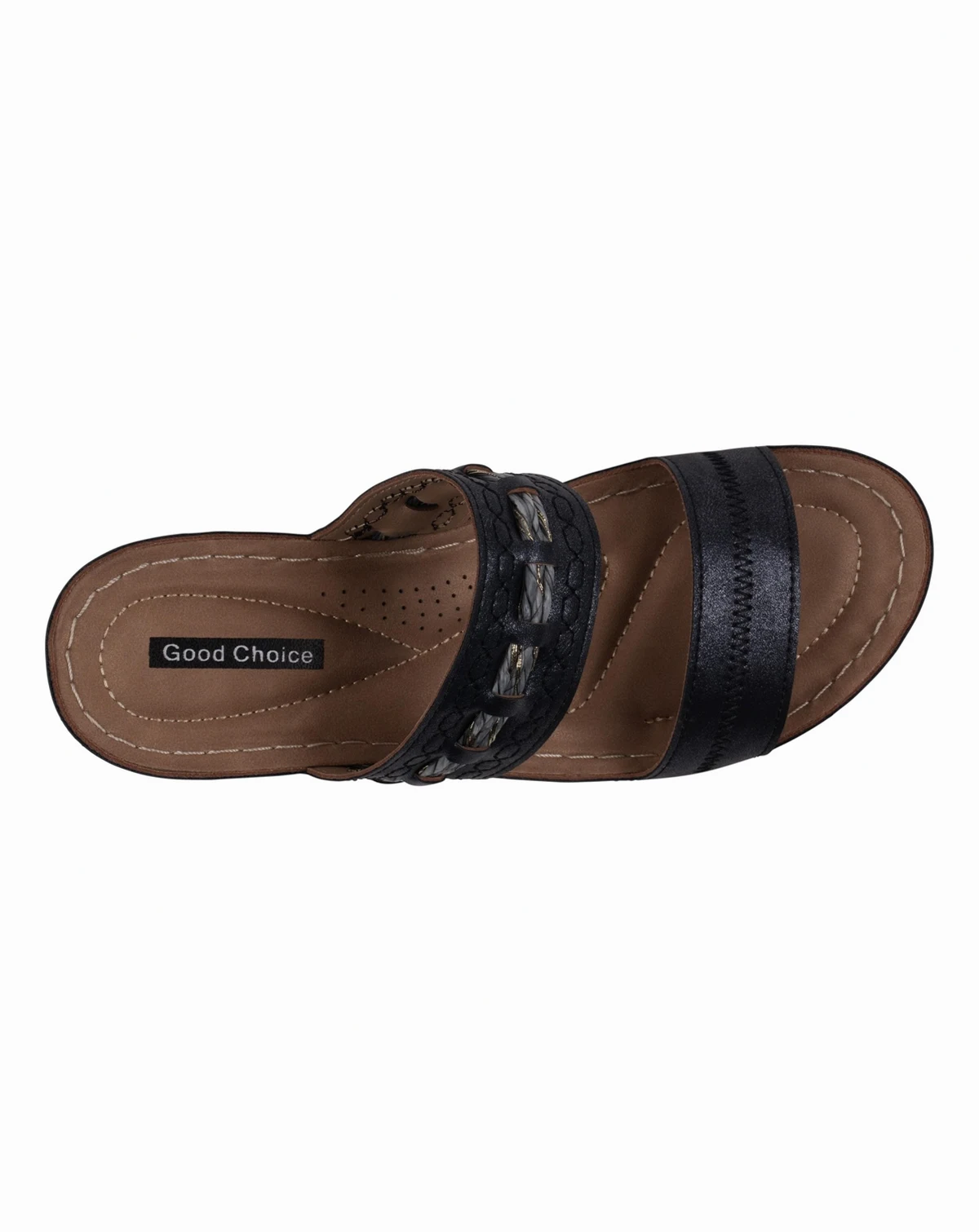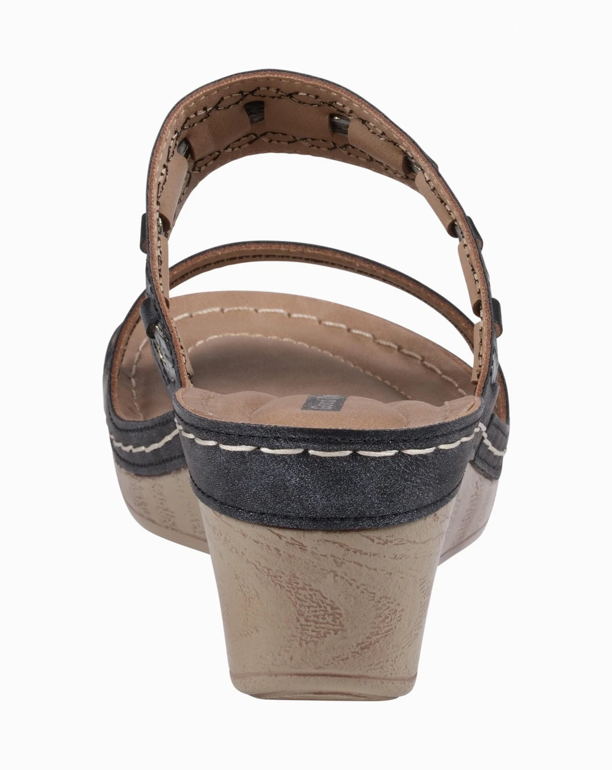 Step into unparalleled comfort with our women's Mariah double band wedge sandals by GC Shoes. These chic slides feature a memory foam footbed, offering a cushioned feel with every step. The double band design adds a touch of sophistication, while the woven detailing enhances the overall style. Whether you're strolling through the city or enjoying a day at the beach, these wedge sandals effortlessly combine fashion and comfort. Elevate your summer wardrobe with the Mariah where relaxation meets refined elegance.