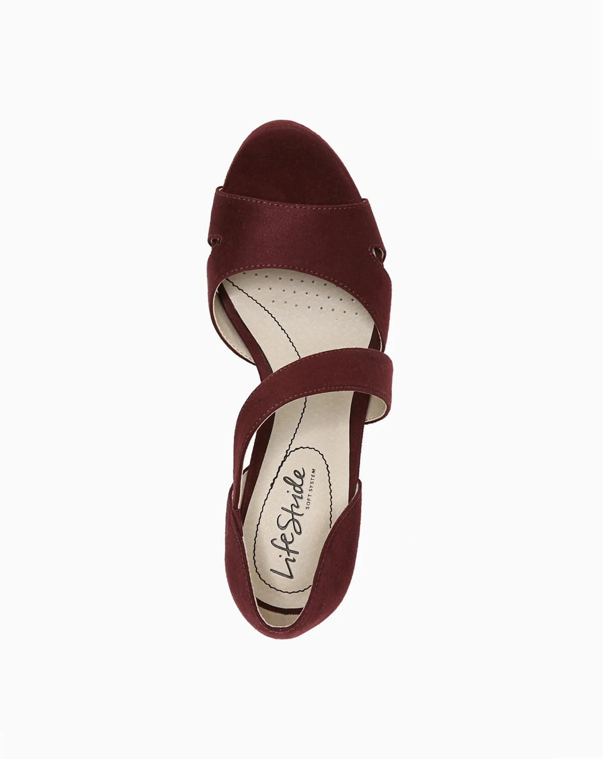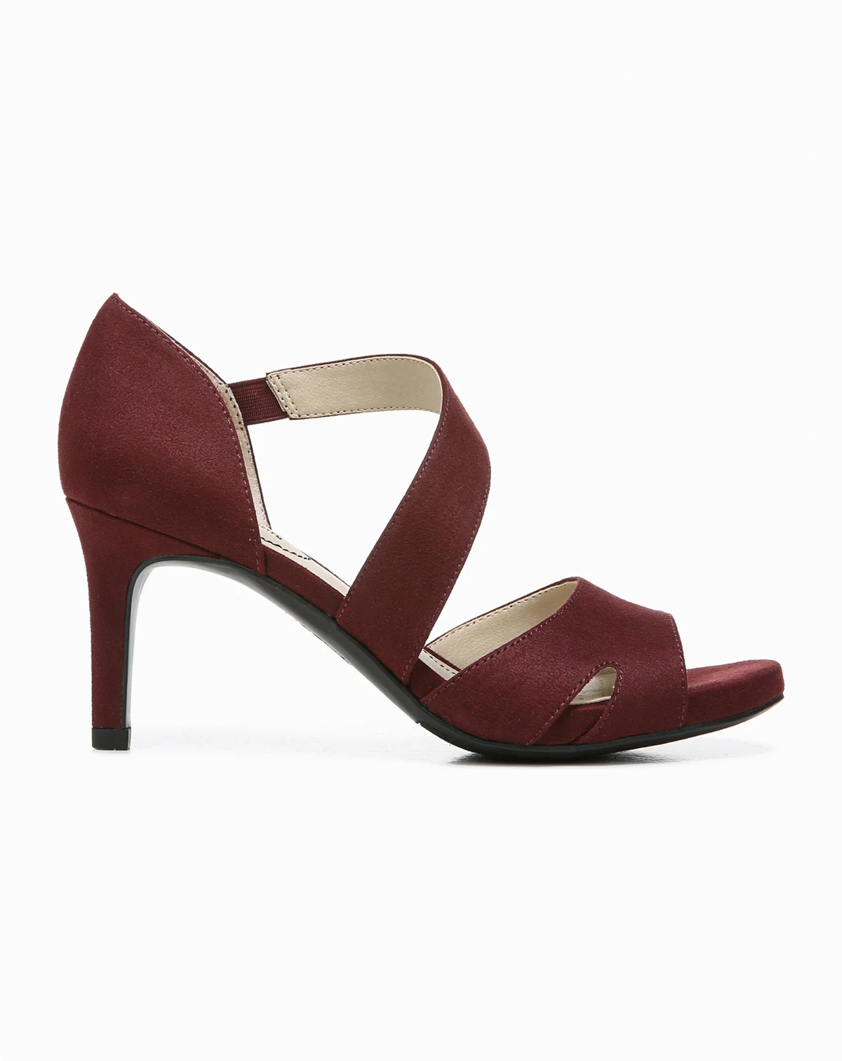 Dress refresh. This need-now heel always rises to the occasion. Faux leather or fabric upper with an open toe, stretch gore panel, and crisscross strap. Linings and insole board. Soft System® comfort package provides all-day support, flex, and cushioning. Traction sole provides you with extra stability. Just Right Height 3-inch heel and 0.5-inch platform.