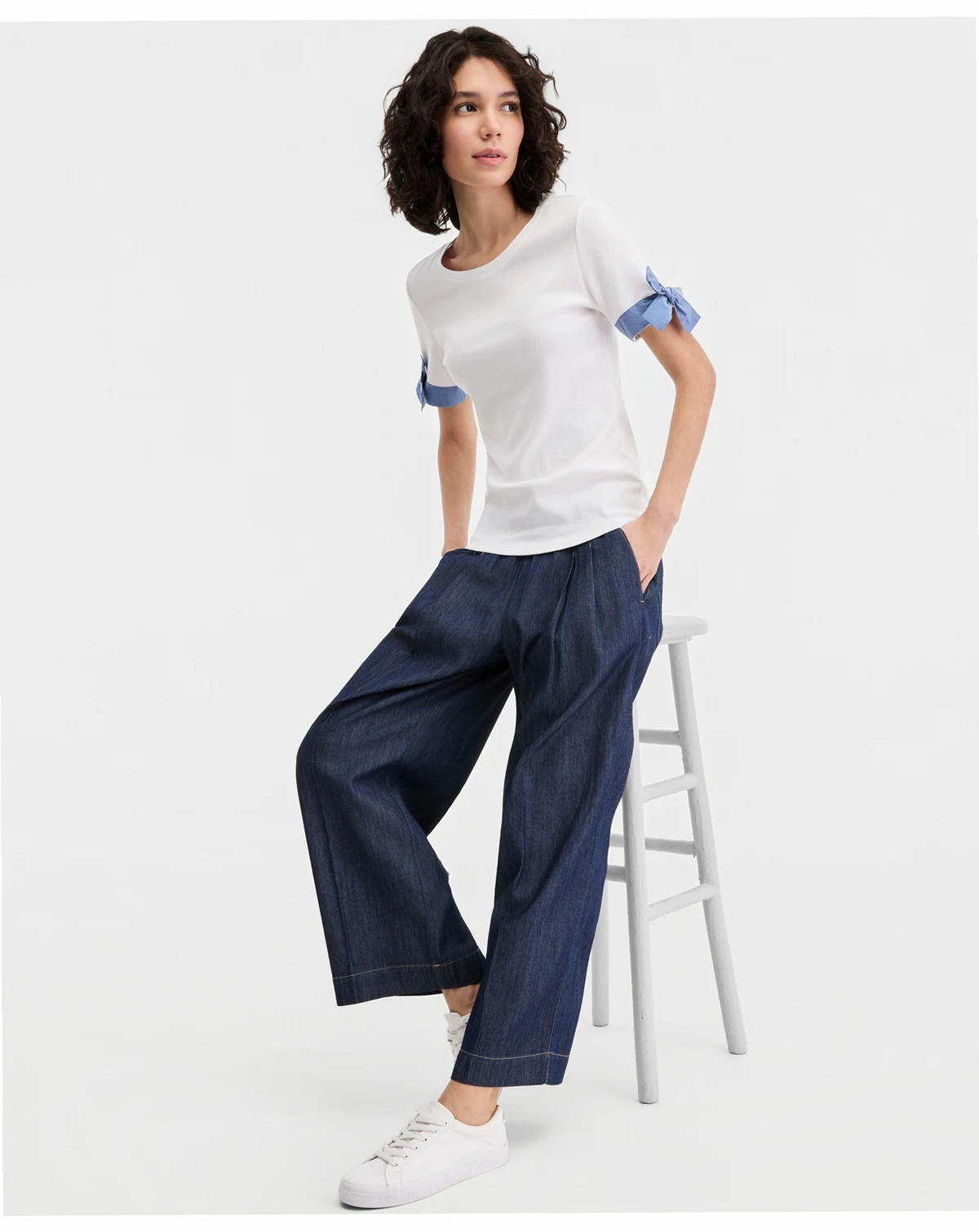Jeans Women's Cotton Tie-Cuff Top