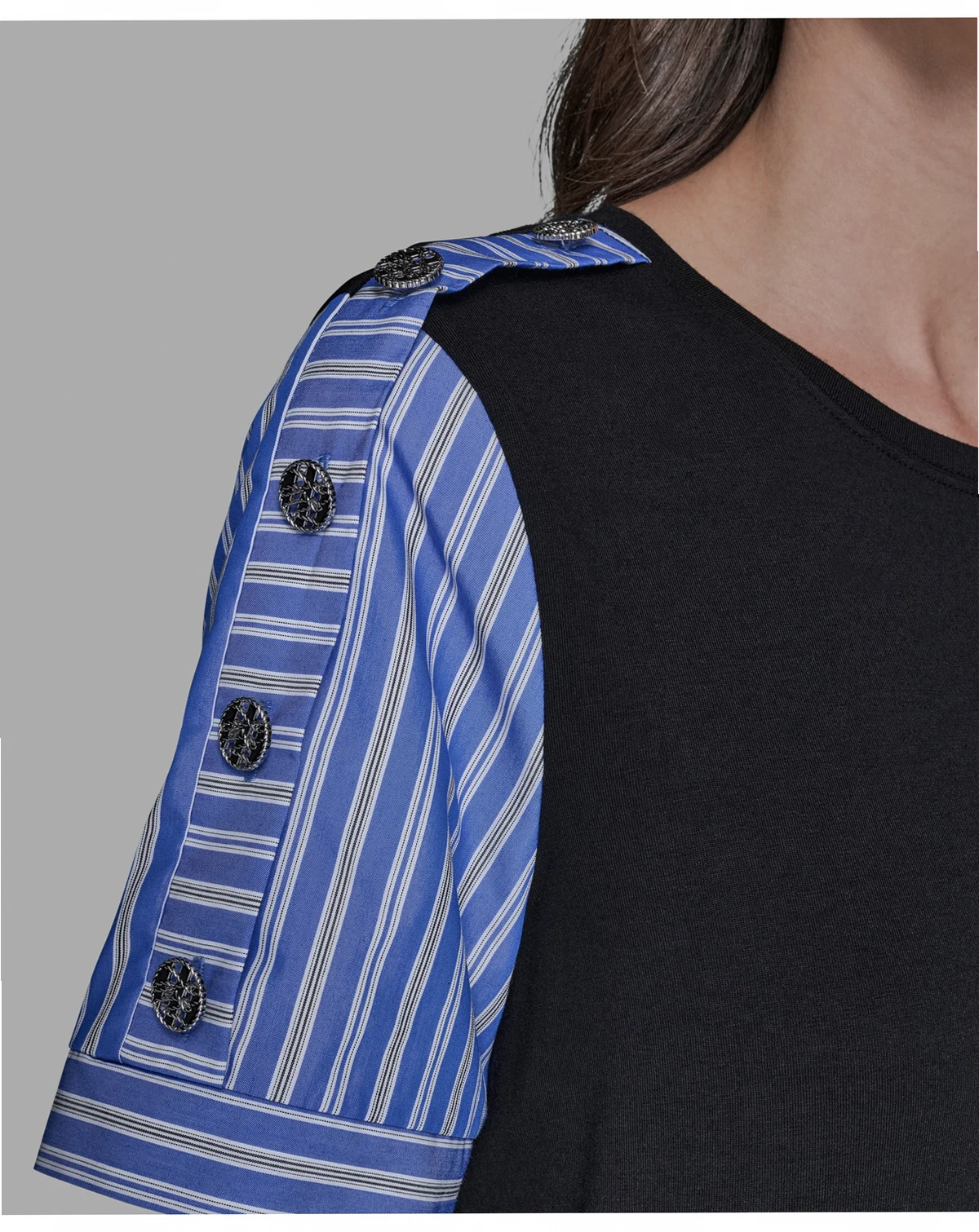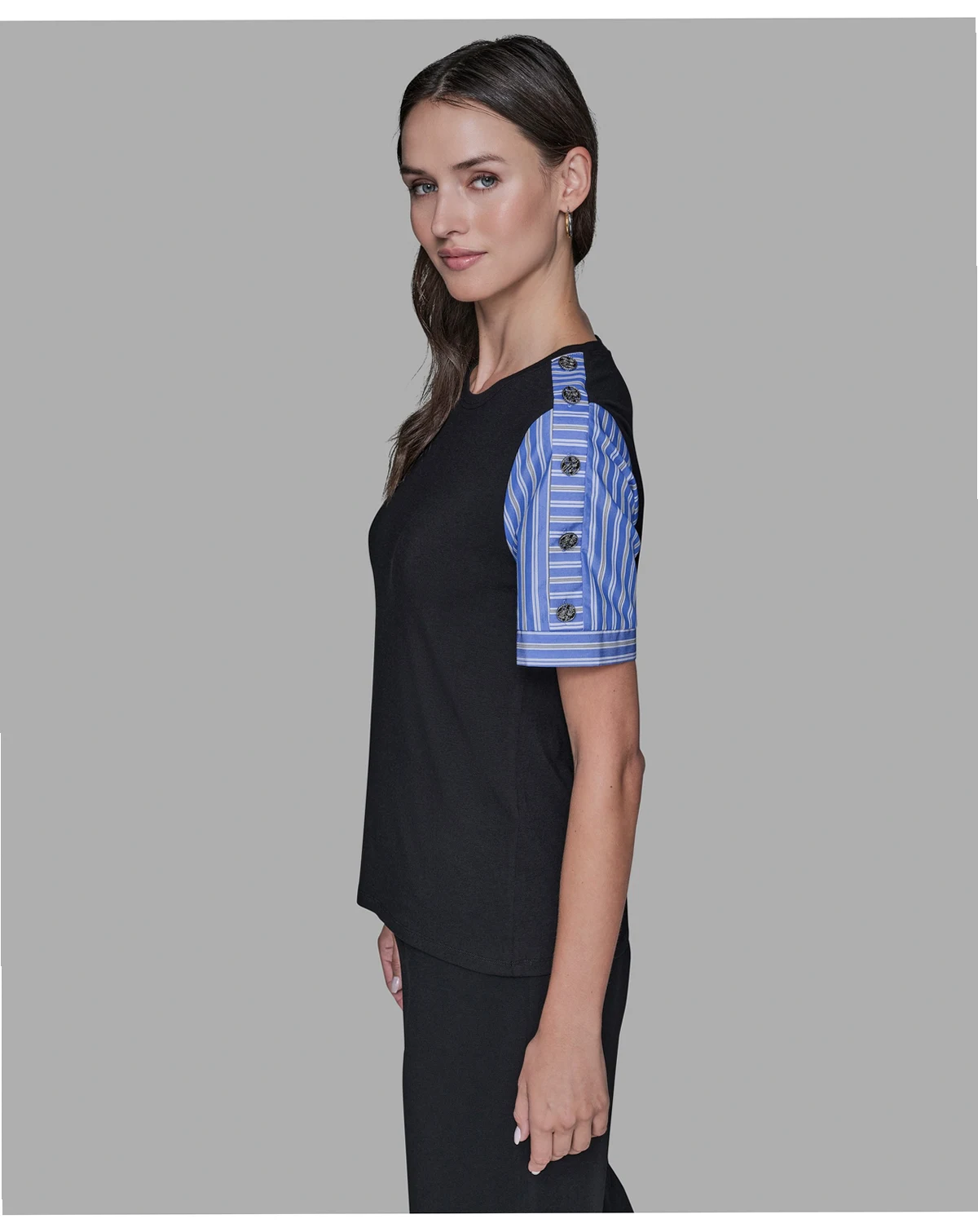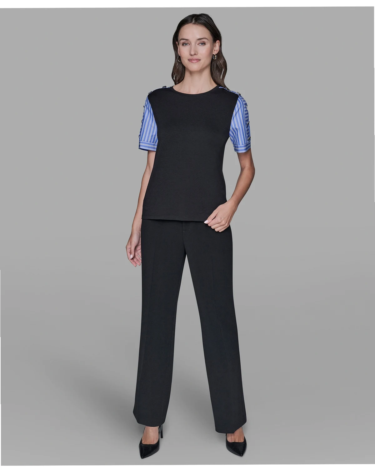 Women's Pinstripe-Sleeve Pull-On Blouse