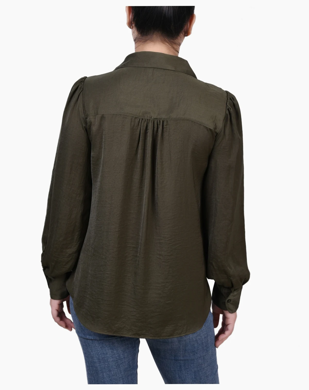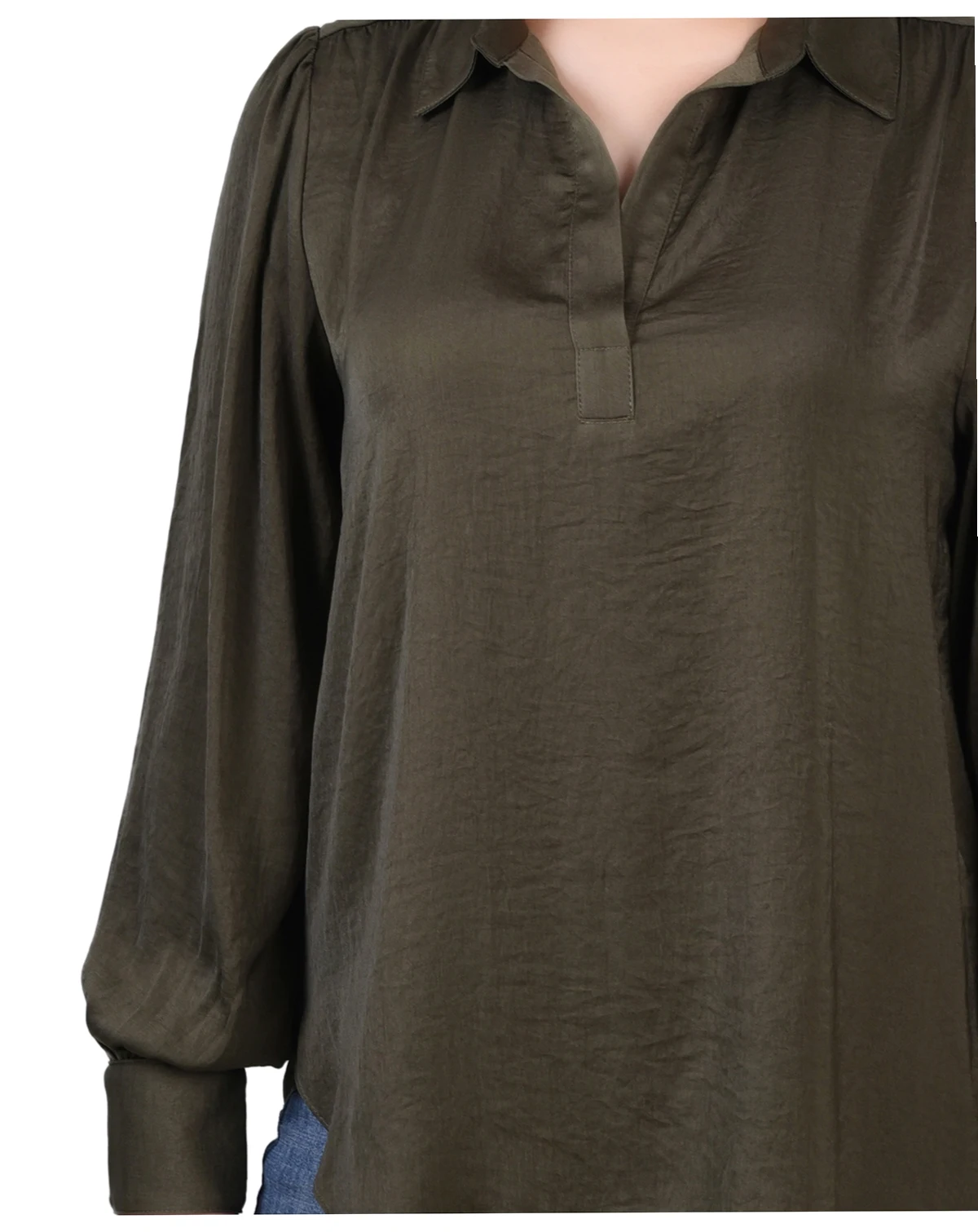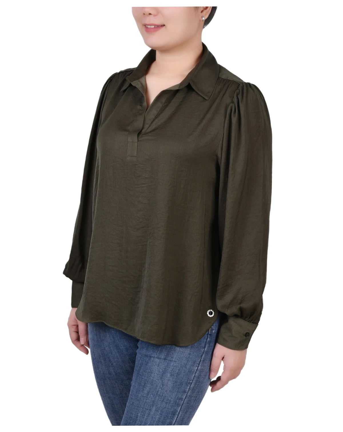 Satin is so "in" this season. This blouse from NY Collection will pair well with your favorite jeans or dress it up with a long skirt or slacks.