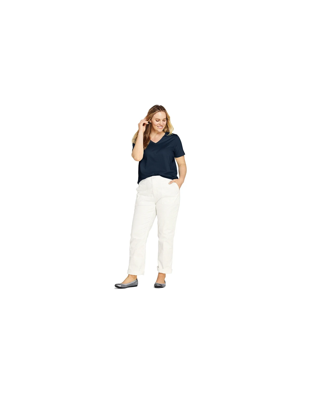 Looking for that new favorite t-shirt that s soft durable and is an easy choice to make day after day? Look no further than the Lands End Women s Relaxed Cotton Short Sleeve V-neck T-shirt. Made from ultra-soft Supima cotton this shirt is light and breathable yet is made to sustain wash after wash. The relaxed cut hangs comfortably on your body perfect for when you want to get outside and take on the day. We make clothes designed to fit every body. Treat yourself to one of the best Supima tees Lands End has to offer..