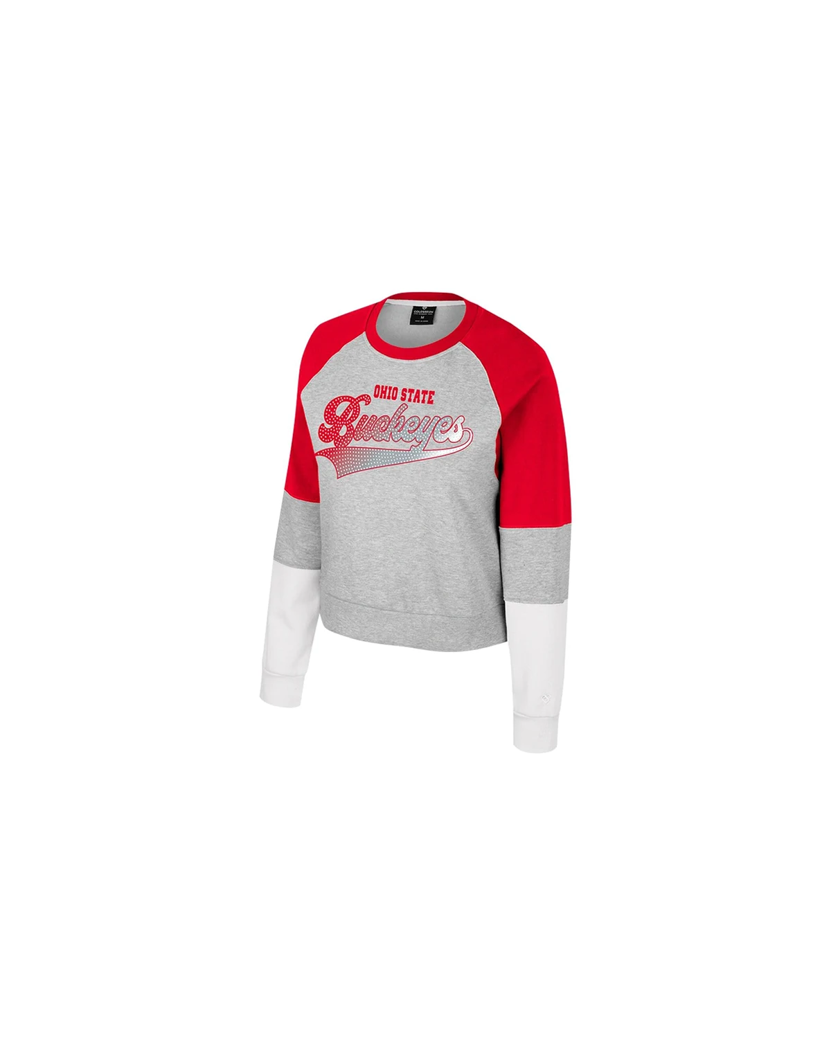 Add some sparkle to your Ohio State Buckeyes game day look with the Colosseum Katinka Rhinestone Scoop Neck Pullover Sweatshirt. This stylish Ohio State Buckeyes sweatshirt features a trendy scoop neck and raglan sleeves for added comfort and a flattering fit. The midweight fabric makes it perfect for those cool game days or cozy nights in, while sewn-in, contrast color panels create a sporty and dynamic look.