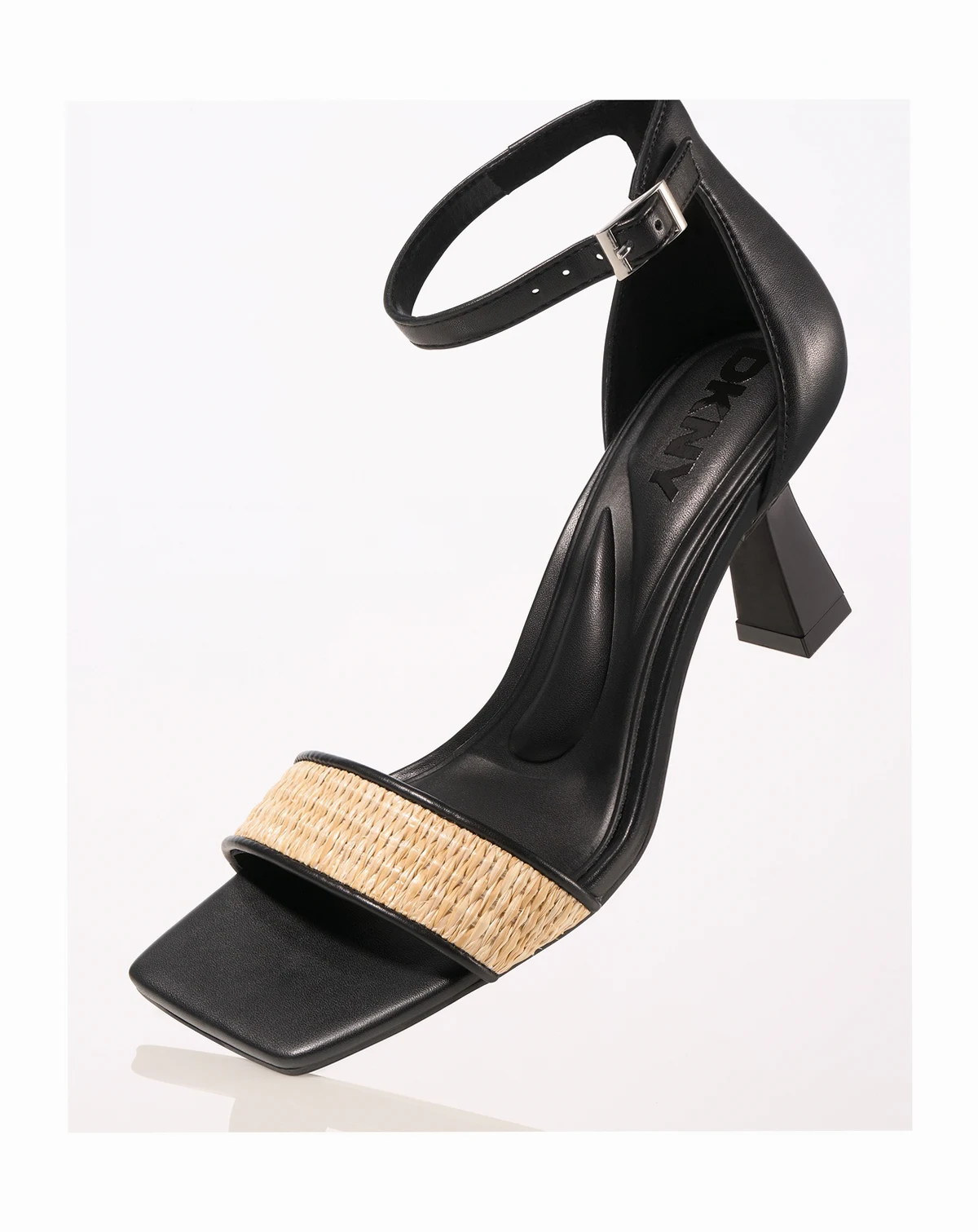 DKNY adds a modern, elevated feel to this ankle-strap sandal, pairing clean lines with textured detailing for a refined yet wearable look