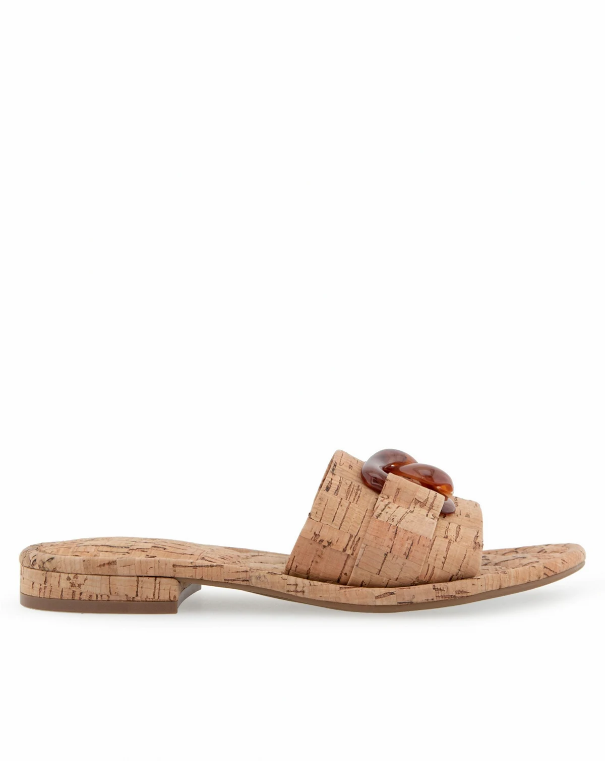 Polished gold tone hardware adorns the big charm, our timeless slide sandal, from Aerosoles shoes. An elevated look for the office, it works equally well on weekends with a breezy shift dress.