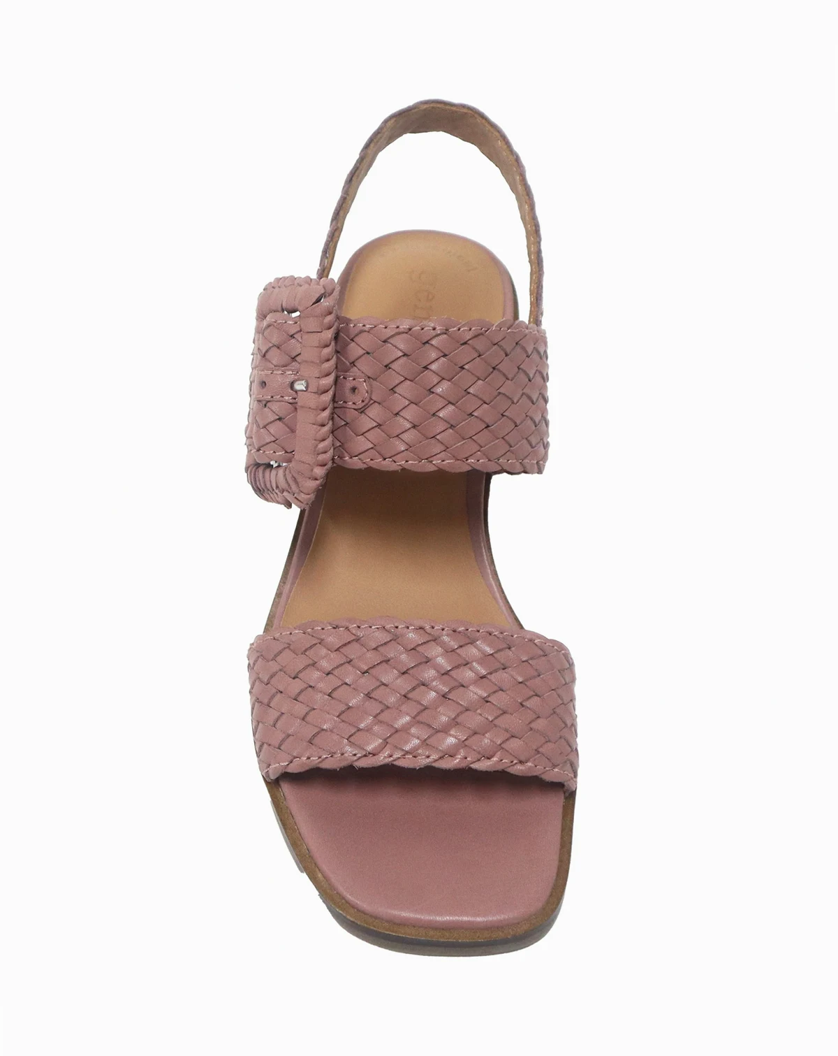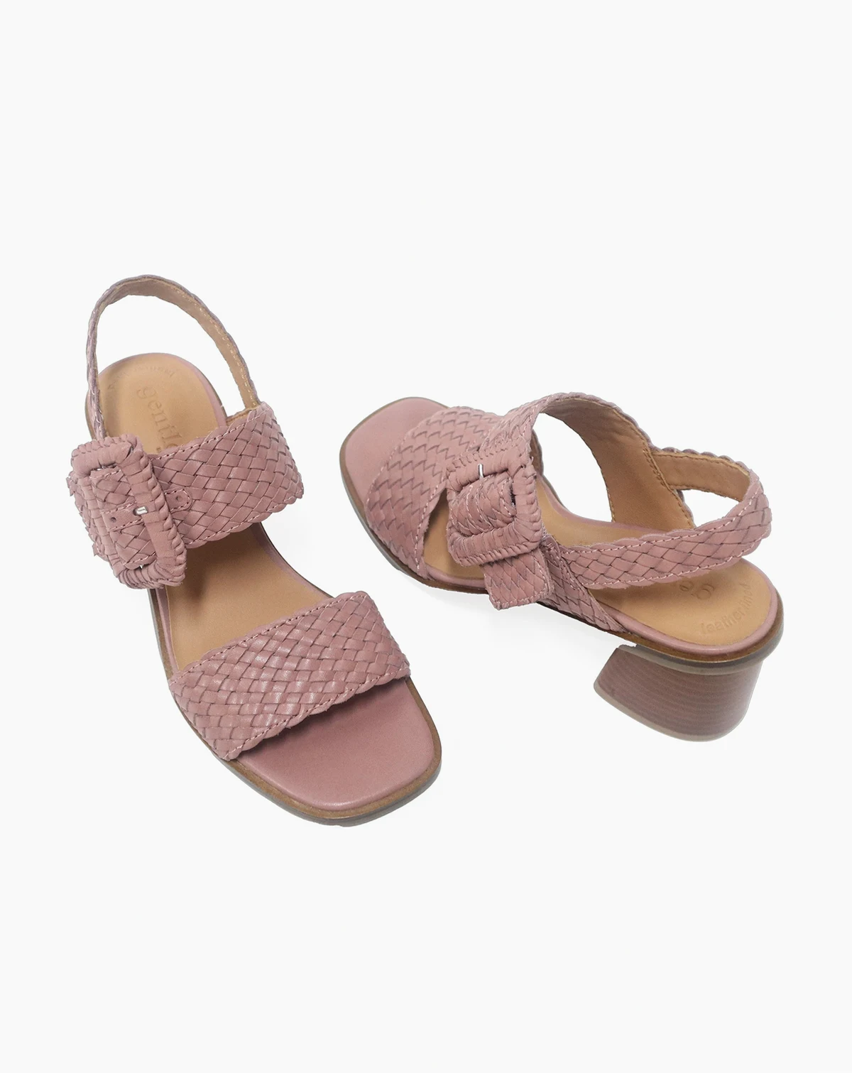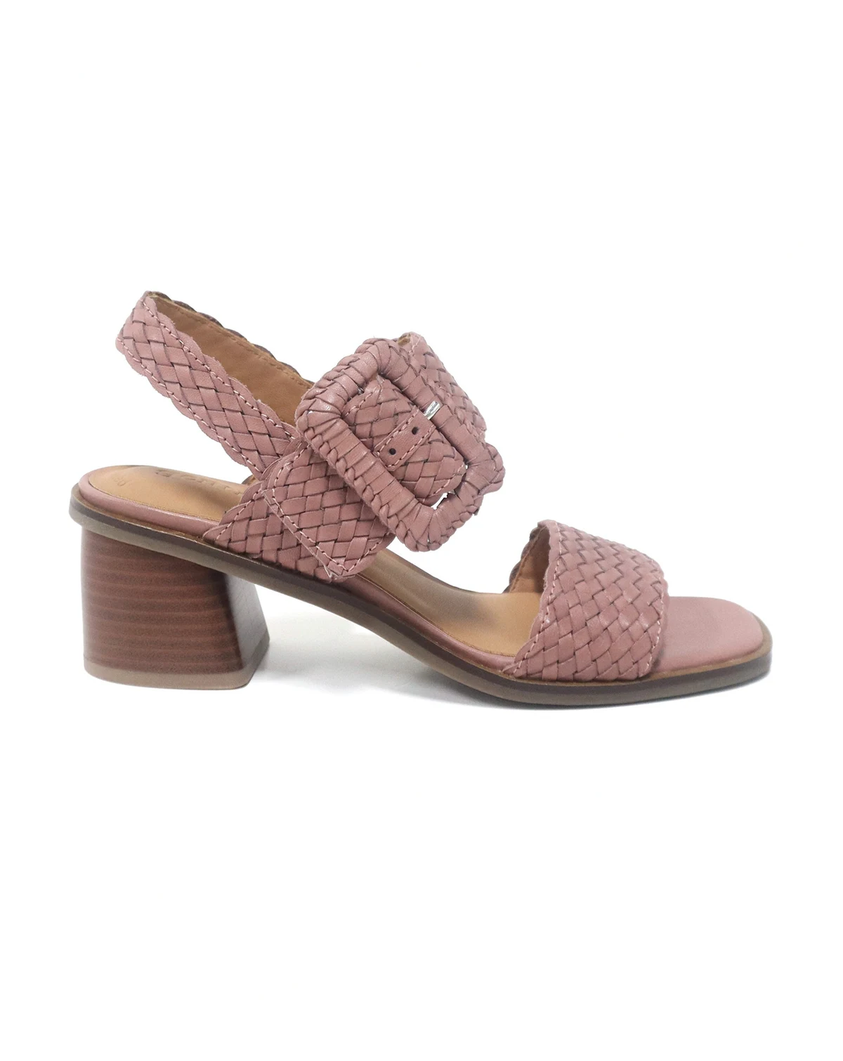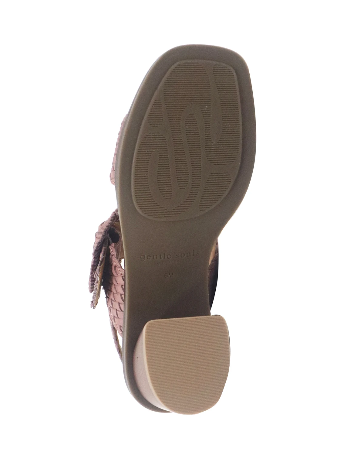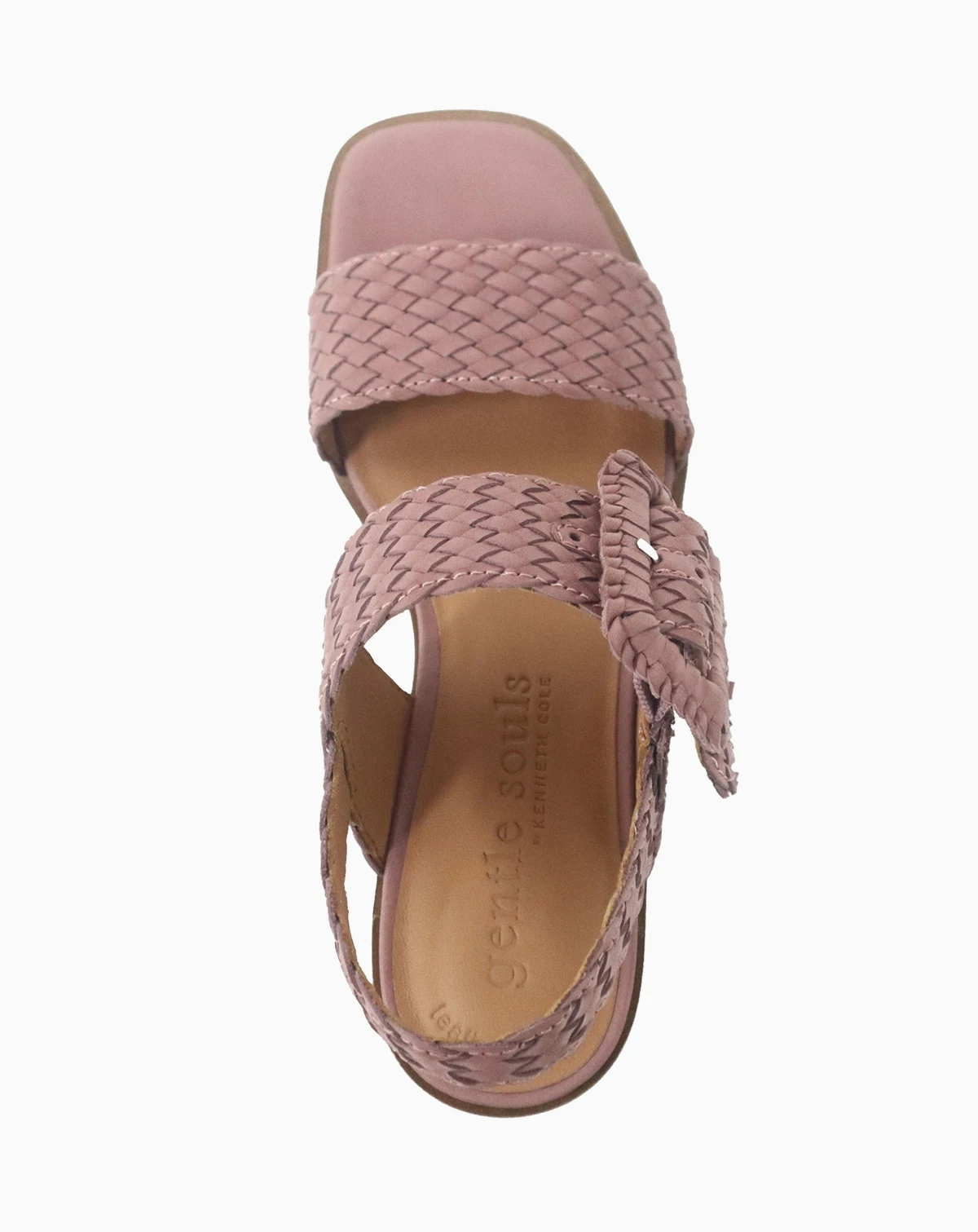 Lending a boho-inspired aesthetic, these Gentle Souls sandals feature a woven leather upper and oversized buckle. The stacked block heel offers a balanced, elegant height.