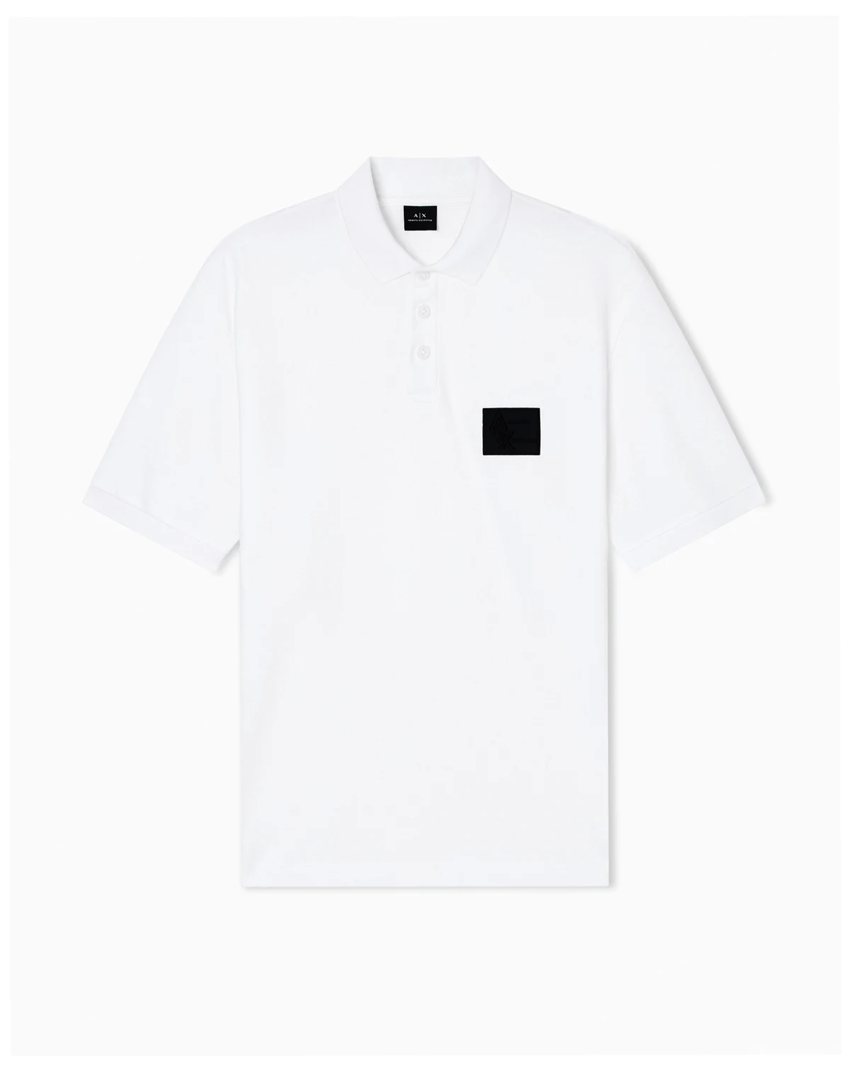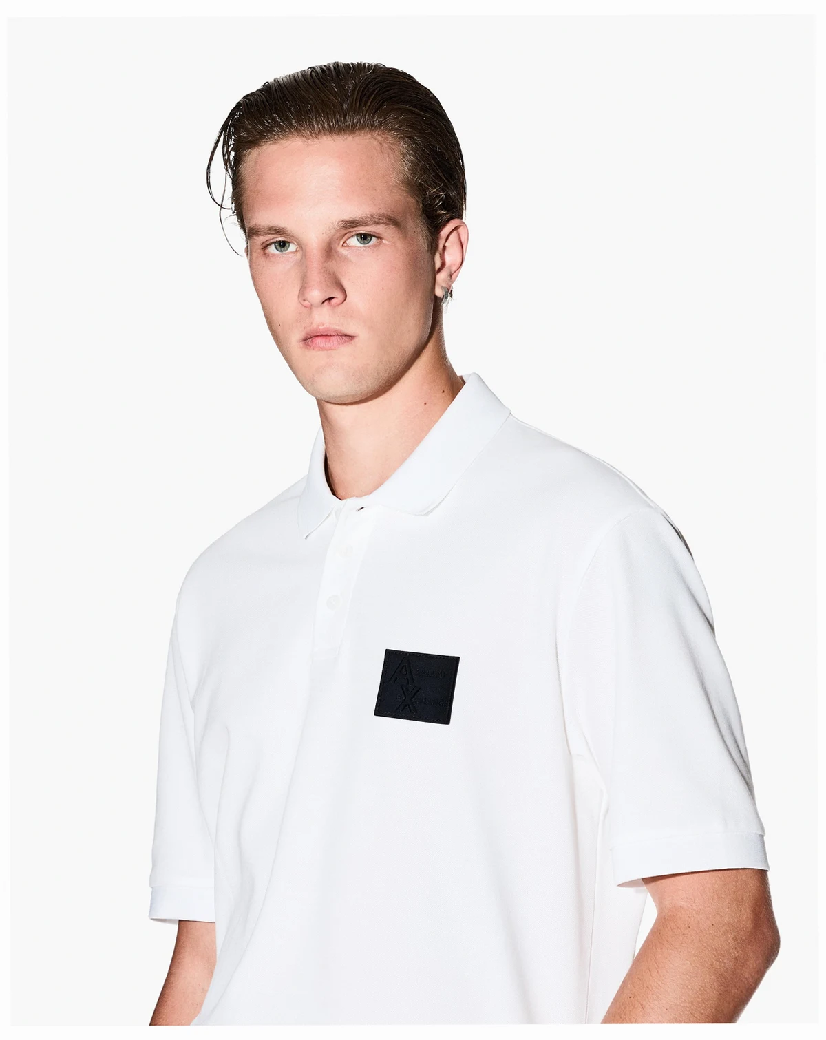 Elevate your casual wardrobe with this Armani Exchange pique polo. Featuring a tonal AX logo on the top chest, this classic piece offers a sophisticated yet relaxed look. Perfect for any occasion, it combines comfort and style effortlessly.