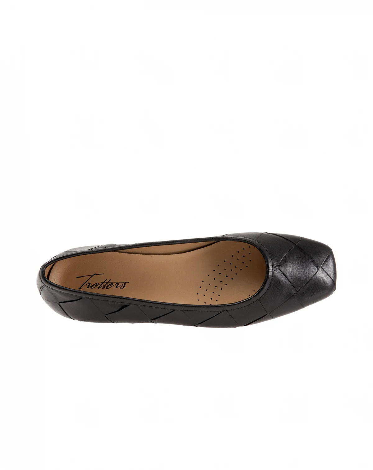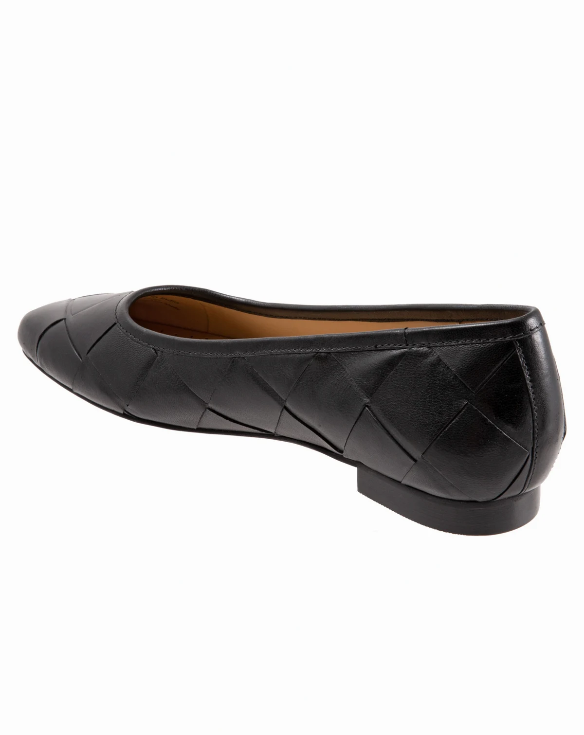Oversized woven detailing adds dramatic flare to the Hanny, a polished square-toe flat with a low stacked heel. Premium burnished leathers highlights the artisan feel of this modern ballerina.