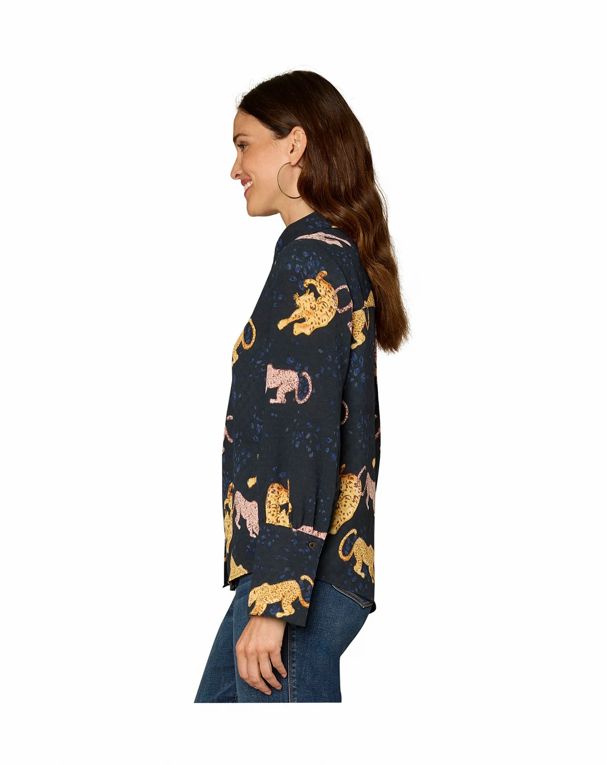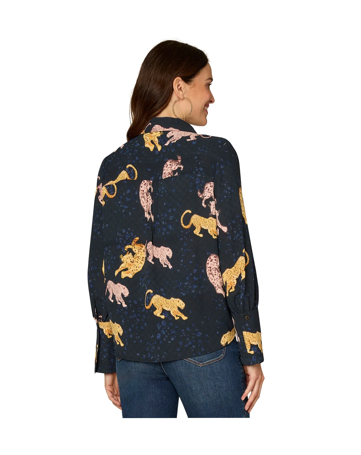 Choose a printed woven top with a French cuff band and button-down design from Democracy for a polished look. The collar and long sleeves create a refined and versatile shirt.