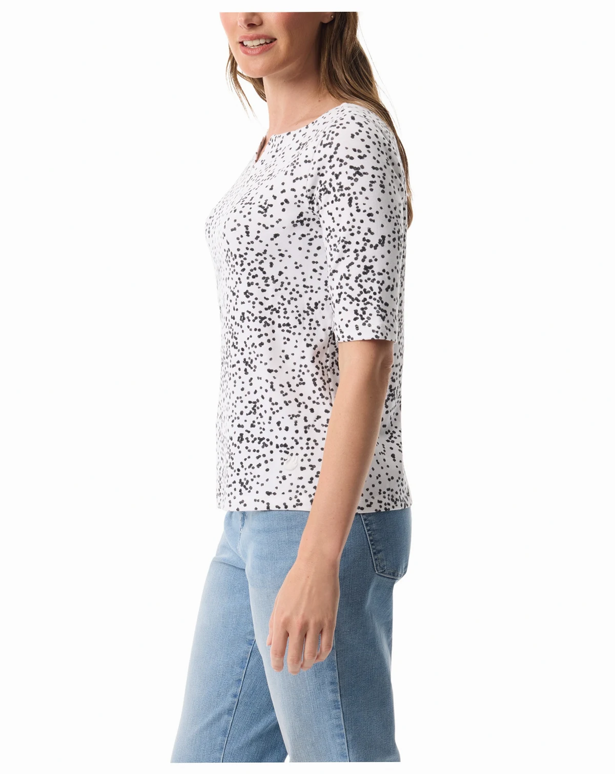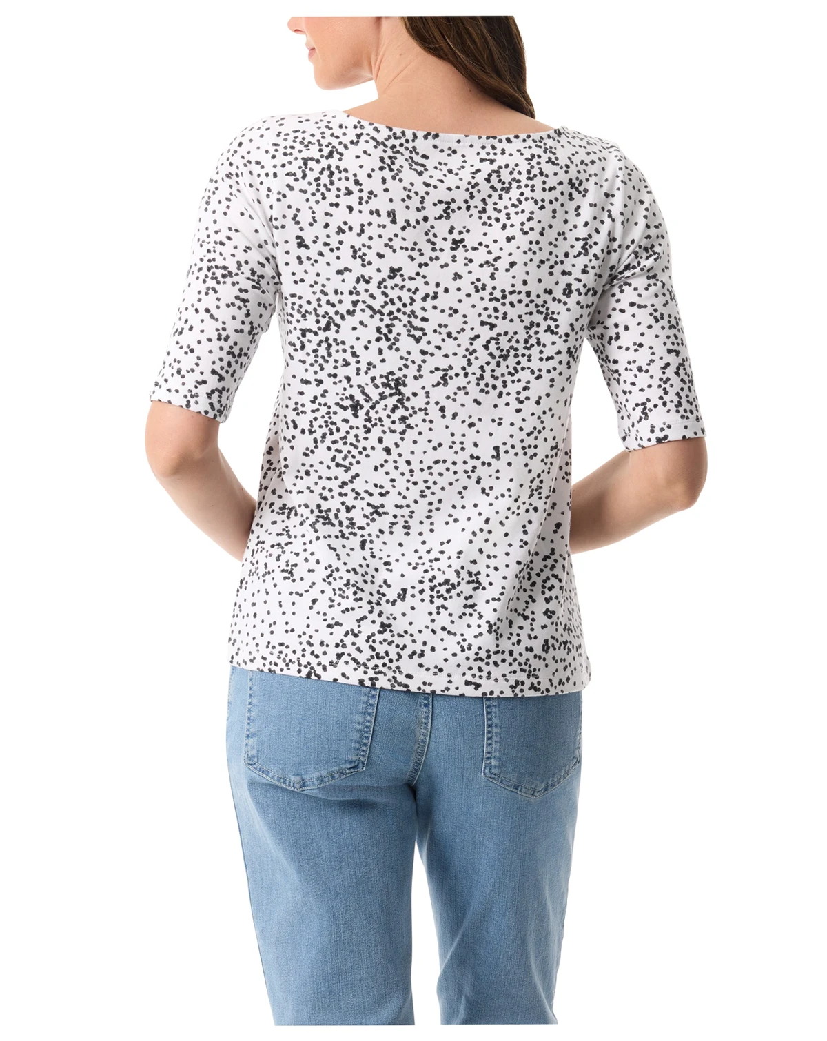Sport a classic boatneck in this elbow sleeve top from Gloria Vanderbilt. The split neckline and embroidered logo offer a comfortable, versatile knit.