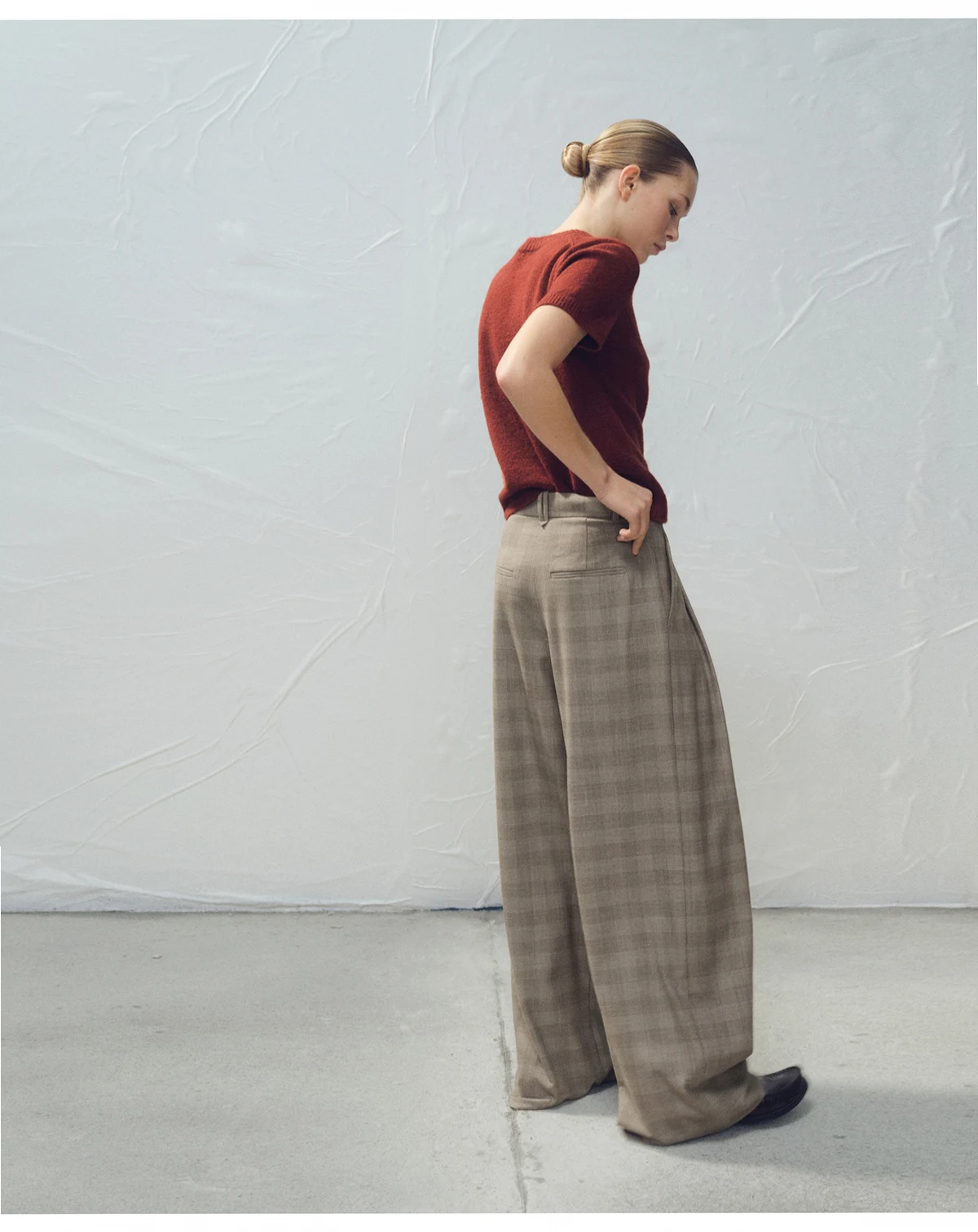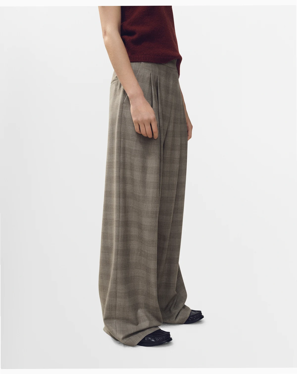 Step into tailored ease with the Wide-Leg Check Suit pants from Mango. Crafted from suit-style fabric, the pants feature wide-leg cut, checked print, belt loops, darts and side pockets.