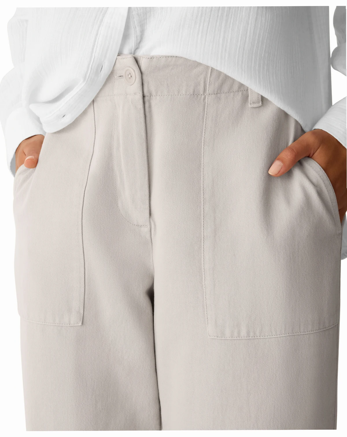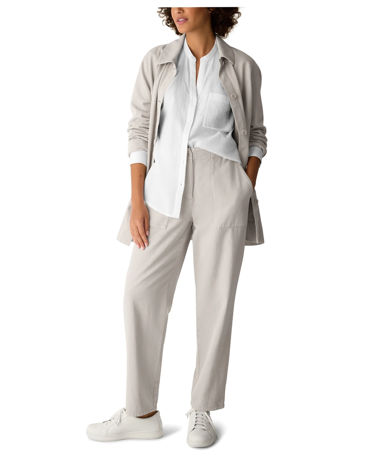 Incorporate workwear-inspired fashion into your wardrobe with these Eileen Fisher pants, featuring a tapered fit for a sleek silhouette. Designed with a mid-rise waist and classic zipper-and-button closure, they combine polished style with everyday comfort.