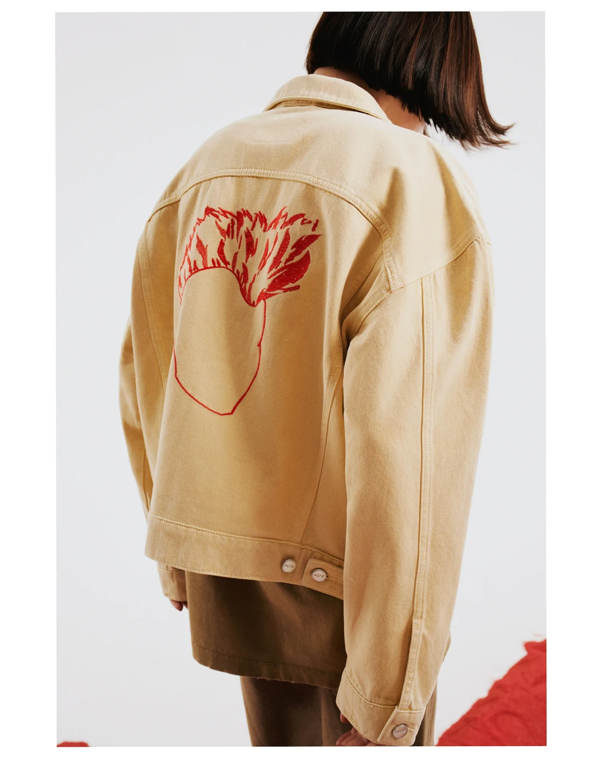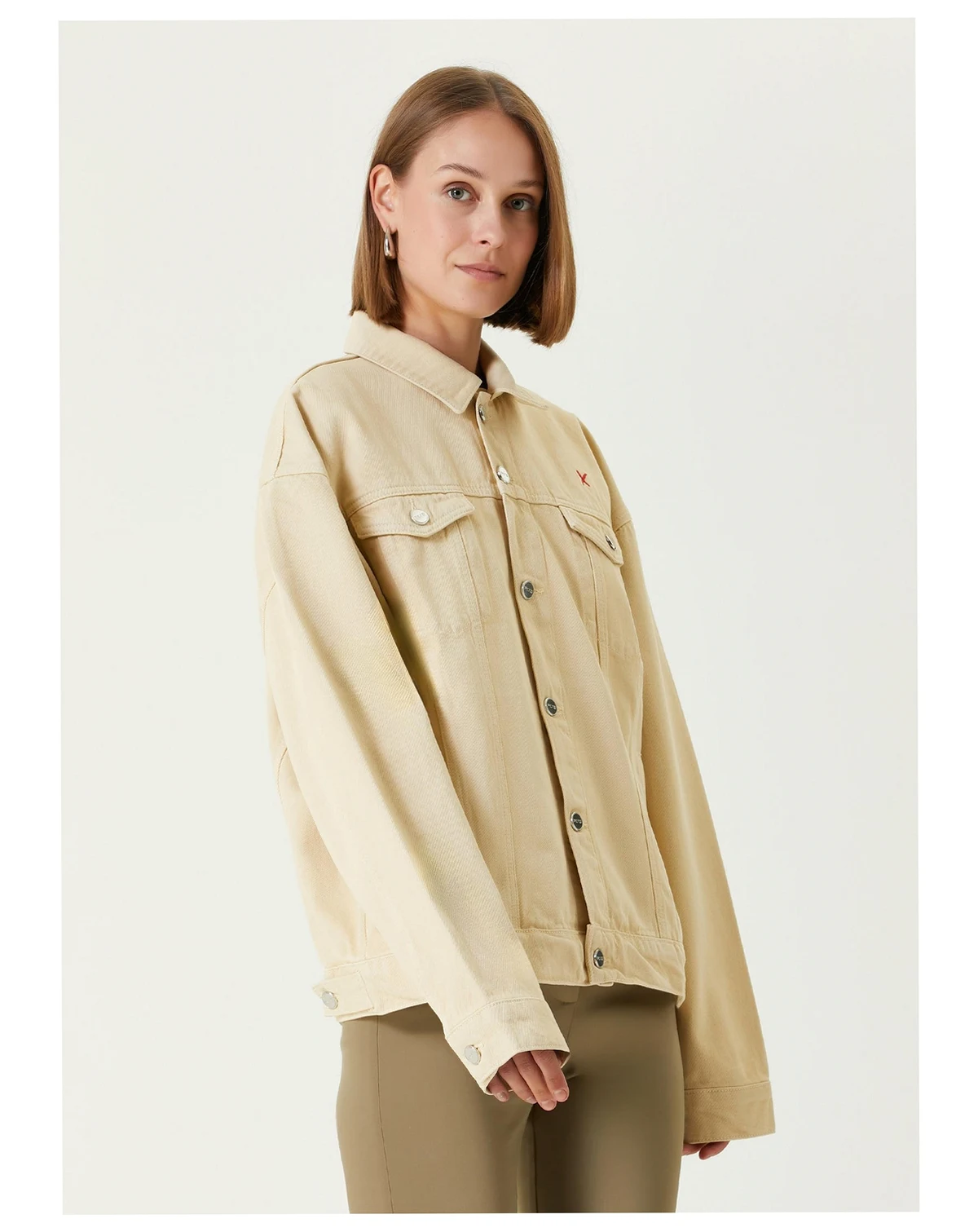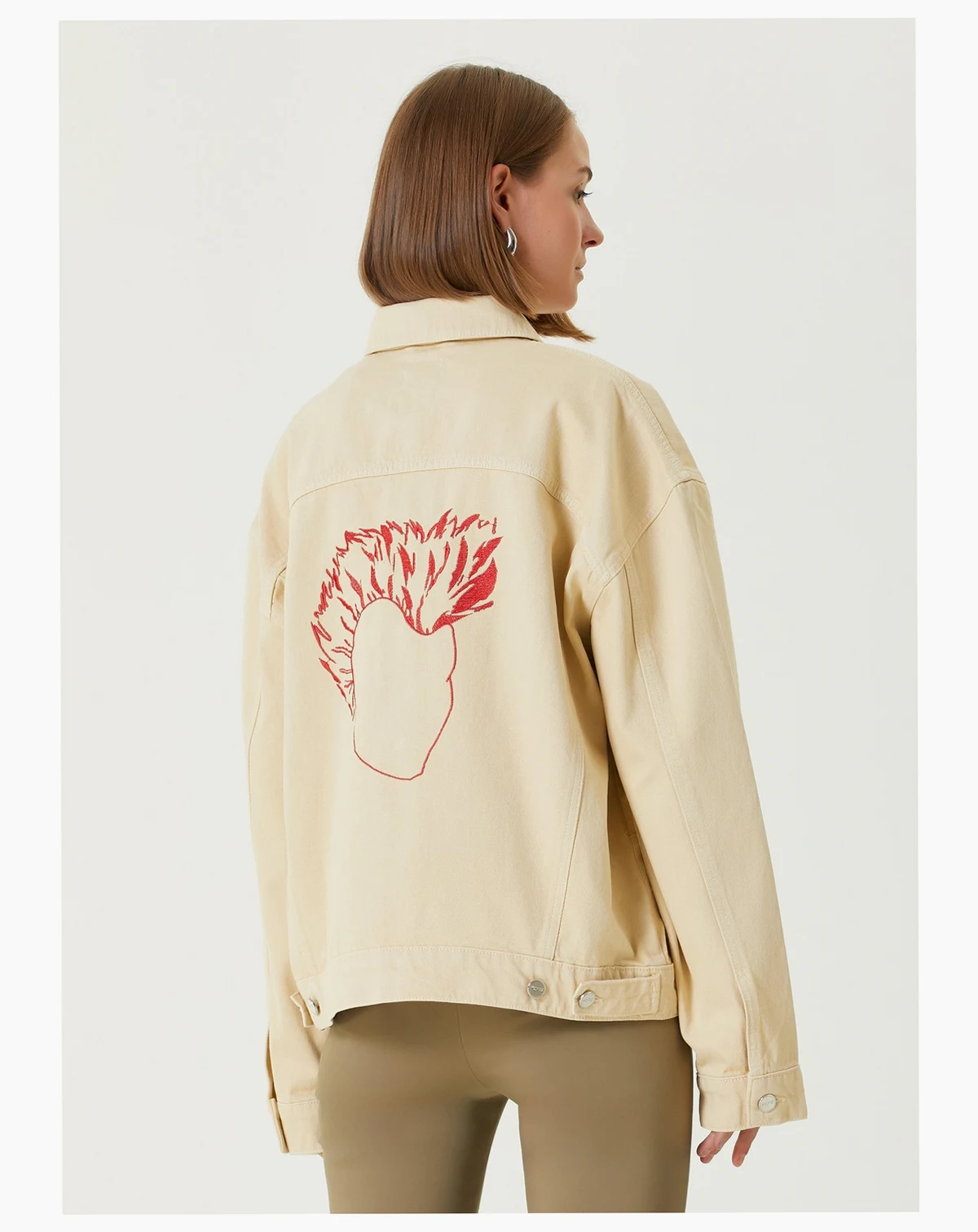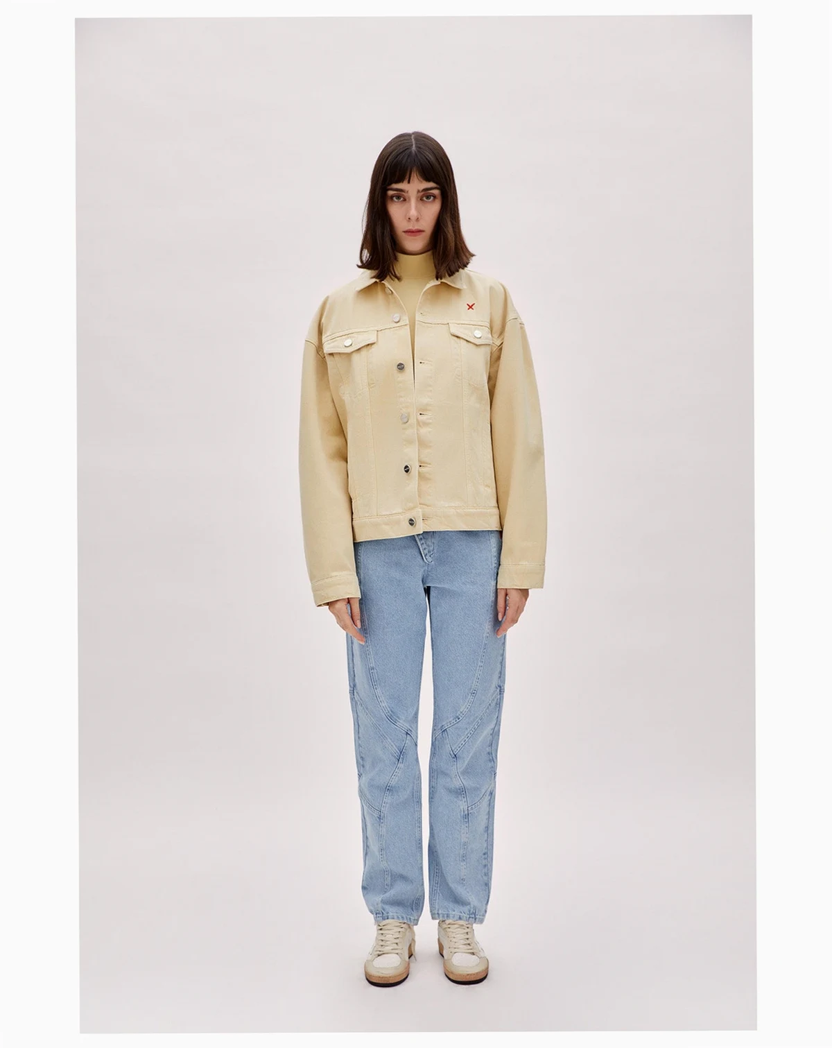 Classic denim jacket silhouette with a relaxed, oversized fit