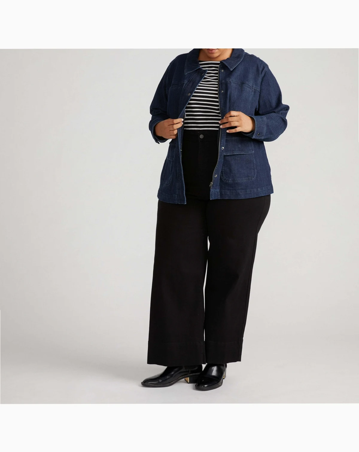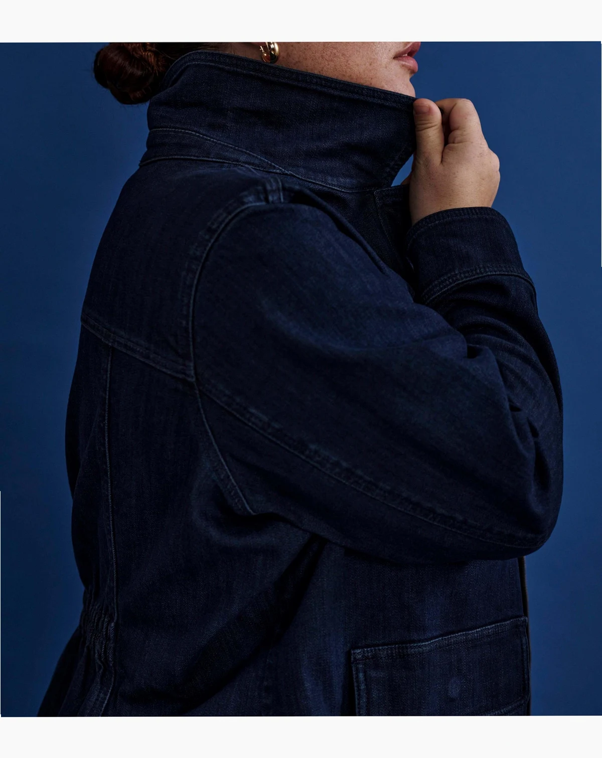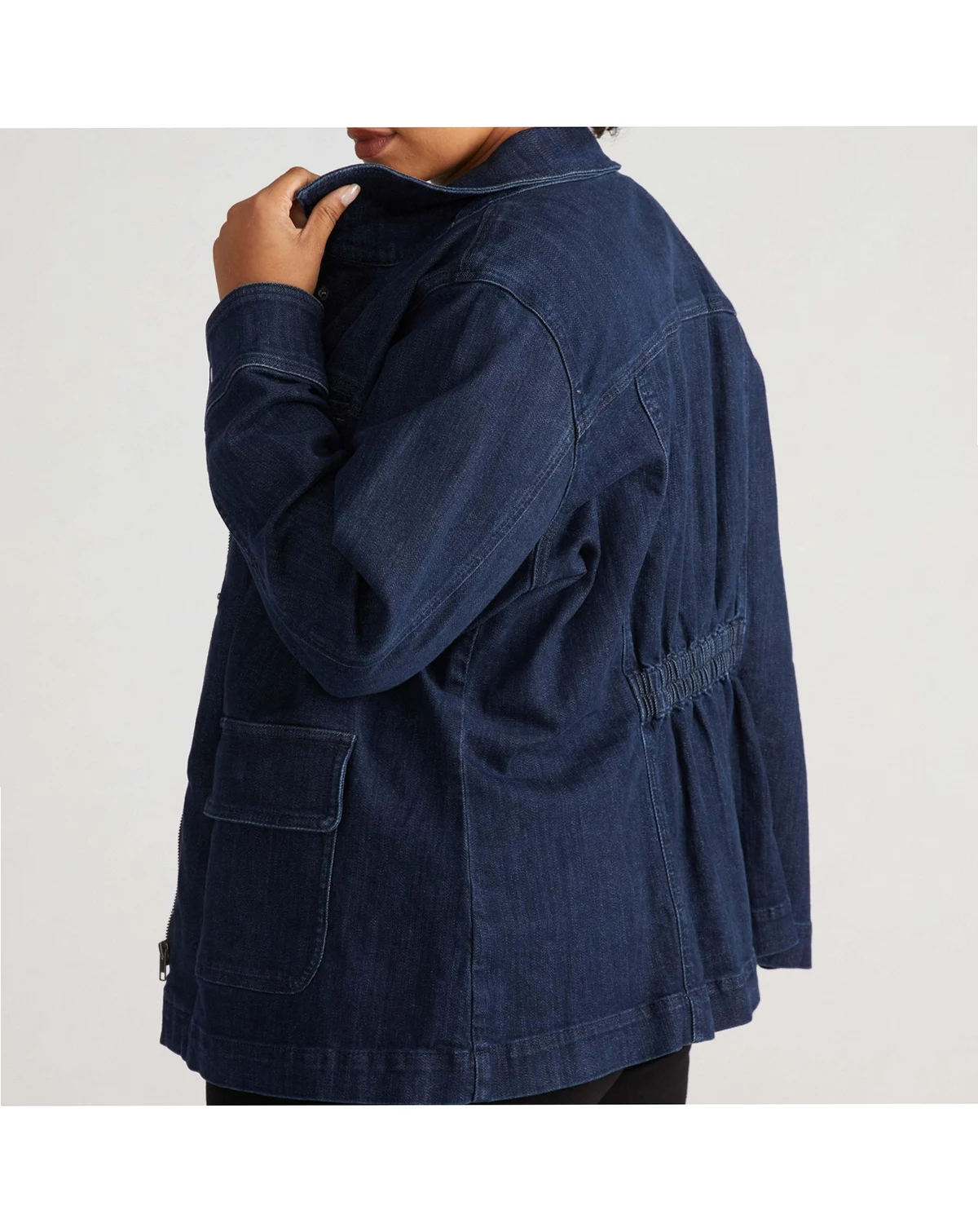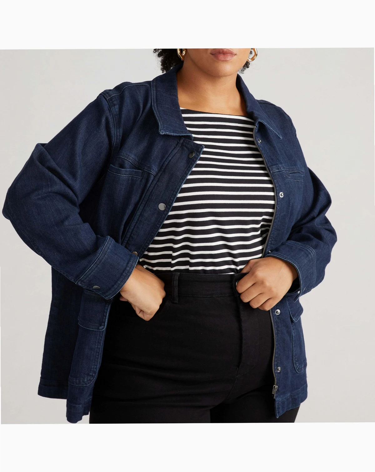You can do anything. Or at least you can look like it. This workwear-inspired utility jacket is a little bit rugged and a little bit fashion. The oversized silhouette is cut from a durable denim and it features oversized pockets for all of your stuff. No purse, no problem. Made from 98.4% cotton and 1.6% elastane, this jacket is designed for comfort and versatility. Machine washable for easy care, it's perfect for layering and everyday wear.